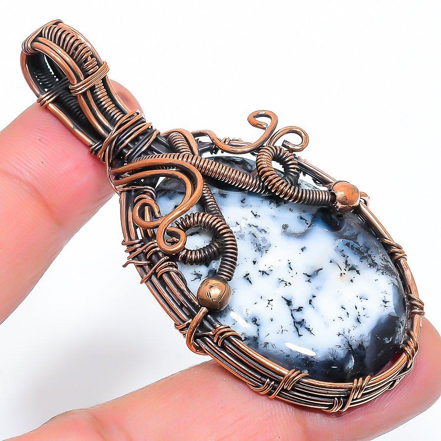 Натуральный дендритовый опал, драгоценный камень, подвеска ручной работы из медной проволоки, 2,60 дюйма, Z2l22