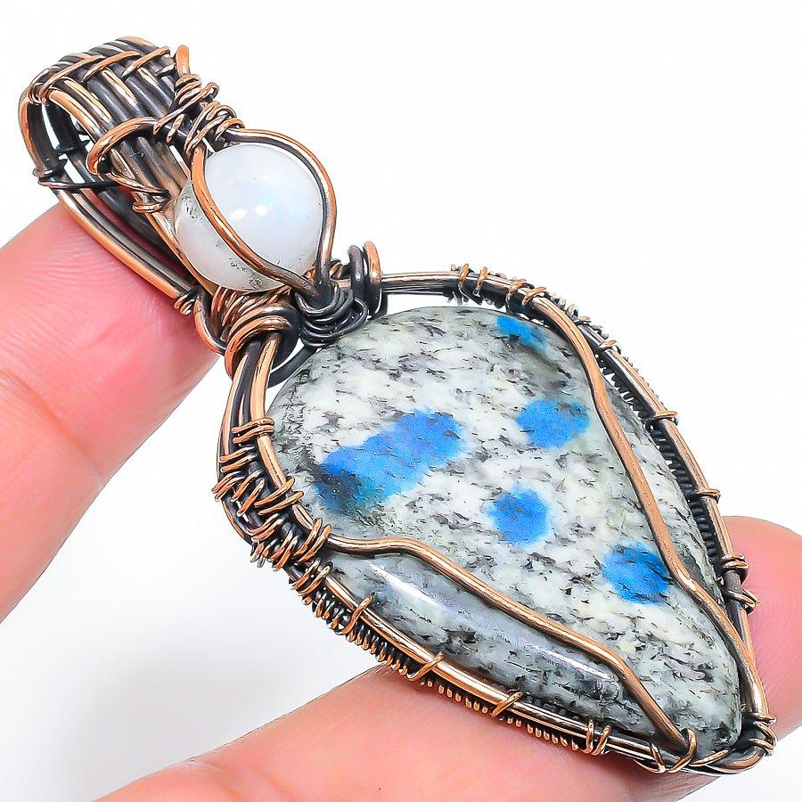 Натуральный камень К2 Азурит Ручная работа Медная проволока Плетение Подарочный кулон 2,76" P3l81
