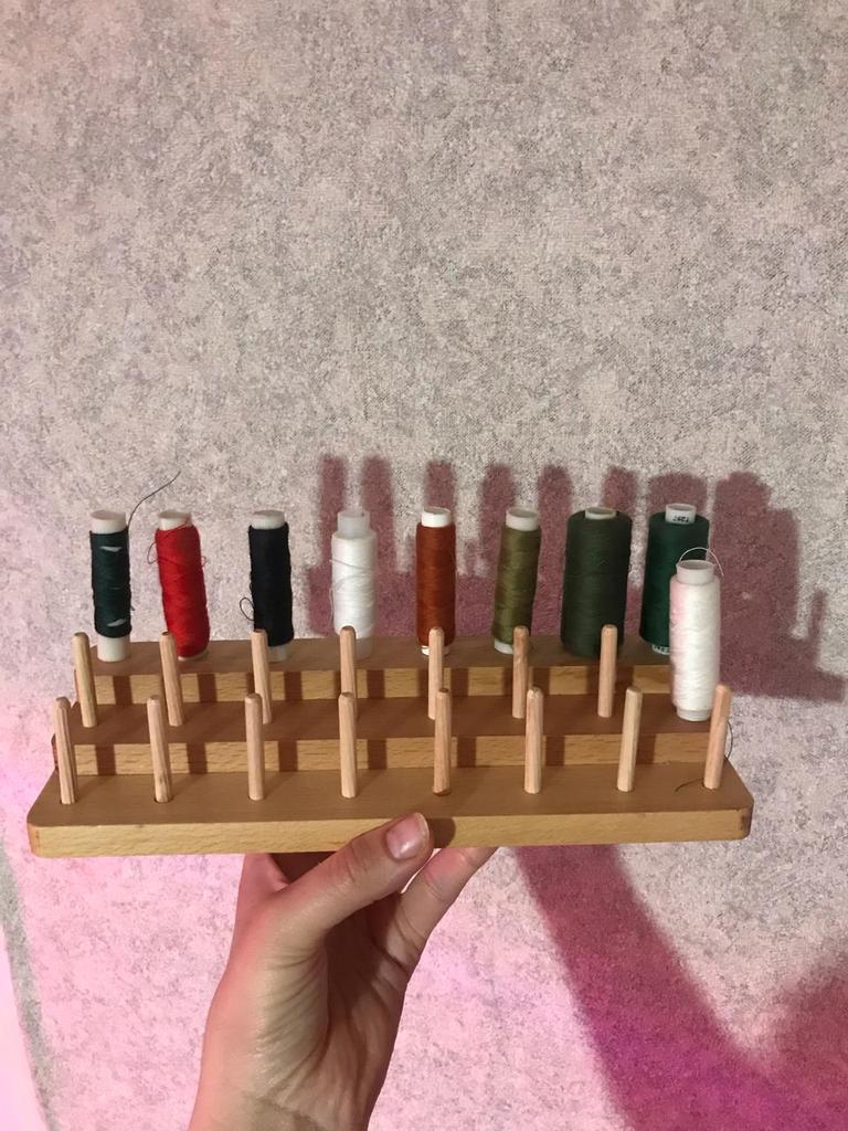 Подставка для катушек с нитками Очень классный держатель катушек, удобный и выполнен из натурального дерева. Пришля подставка запаянна в слюду, в коробке лежал. Все пришло целое. Каждая шпилька надежно вставляется в свое место! Органайзер создан для удобства, поможет навести порядок на рабочем месте, плюс ускорит рабочий процесс, стенд рассчитан на 24 катушки с нитками! Удобное приспособление для шитья, вязания и вышивания. Рукодельницам советую!