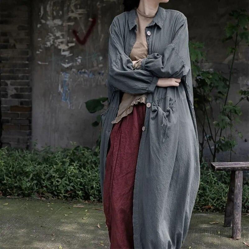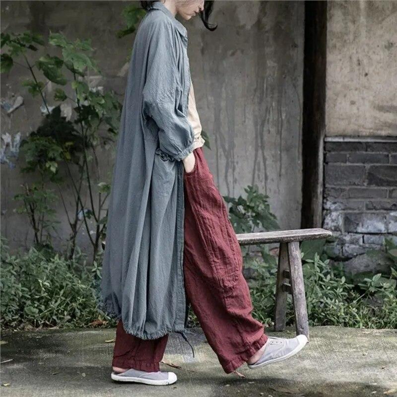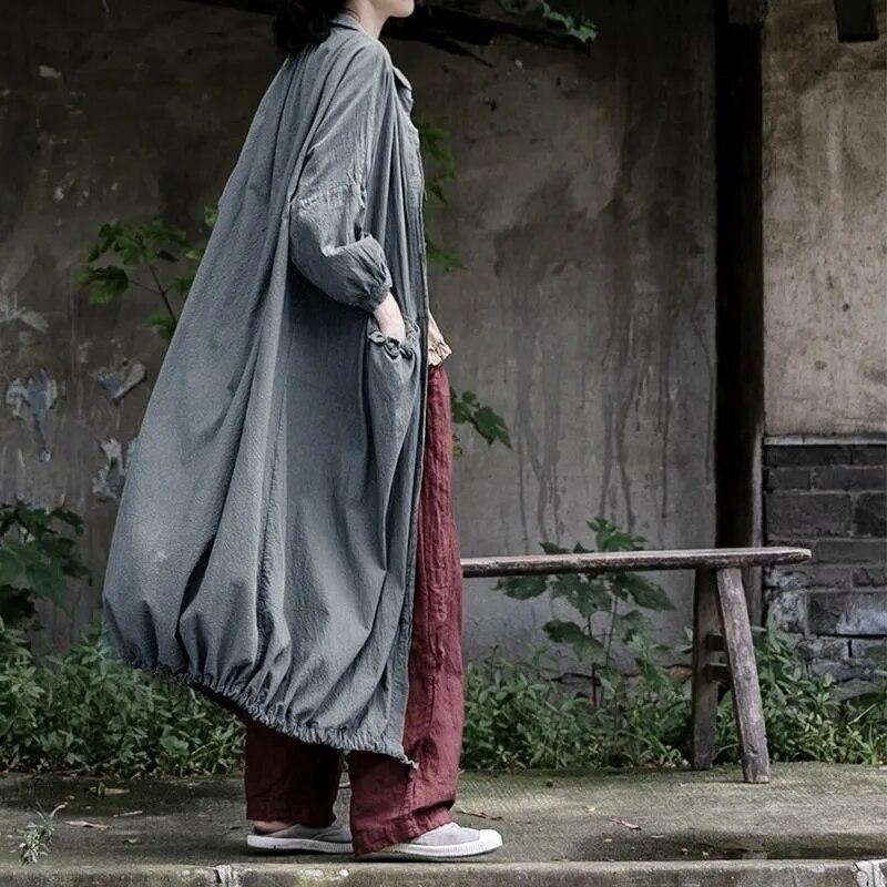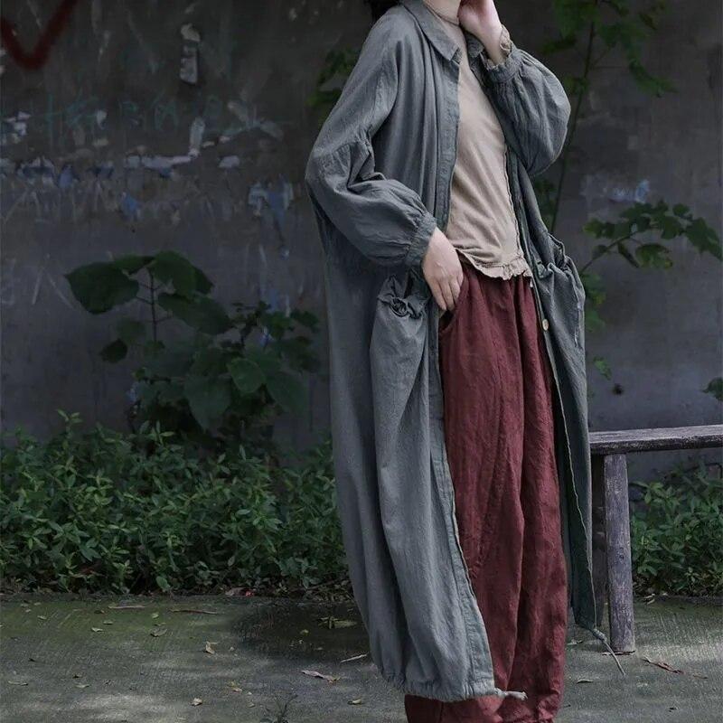 Johnature Женский винтажный Тренч с отложным воротником и пуговицами, однотонное свободное лоскутное пальто с карманами, осенний Тренч