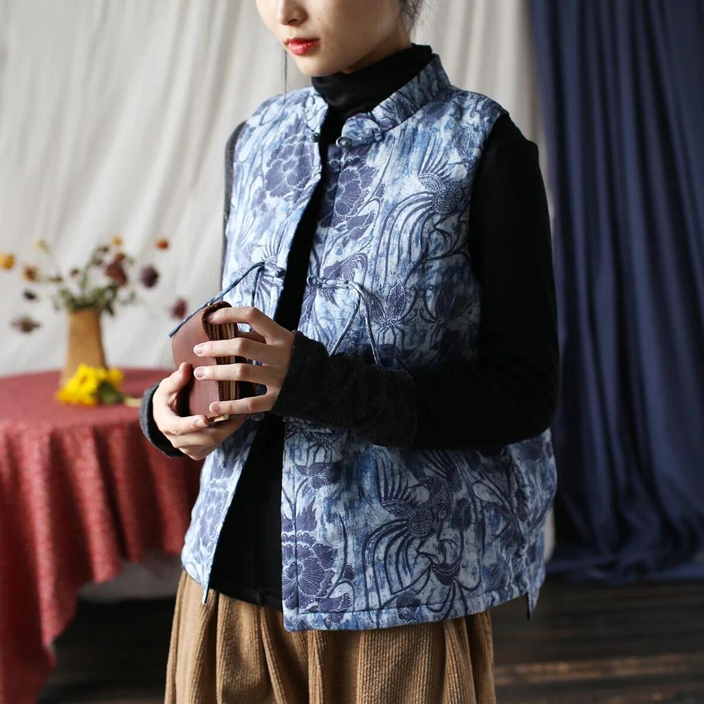 Johnature Женские винтажные жилеты на пуговицах, пальто с цветочным принтом и хлопковой одеждой, весенние женские жилеты в китайском стиле