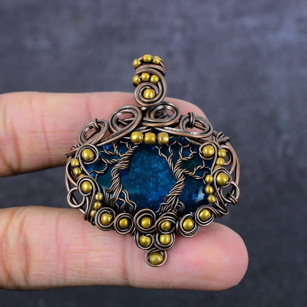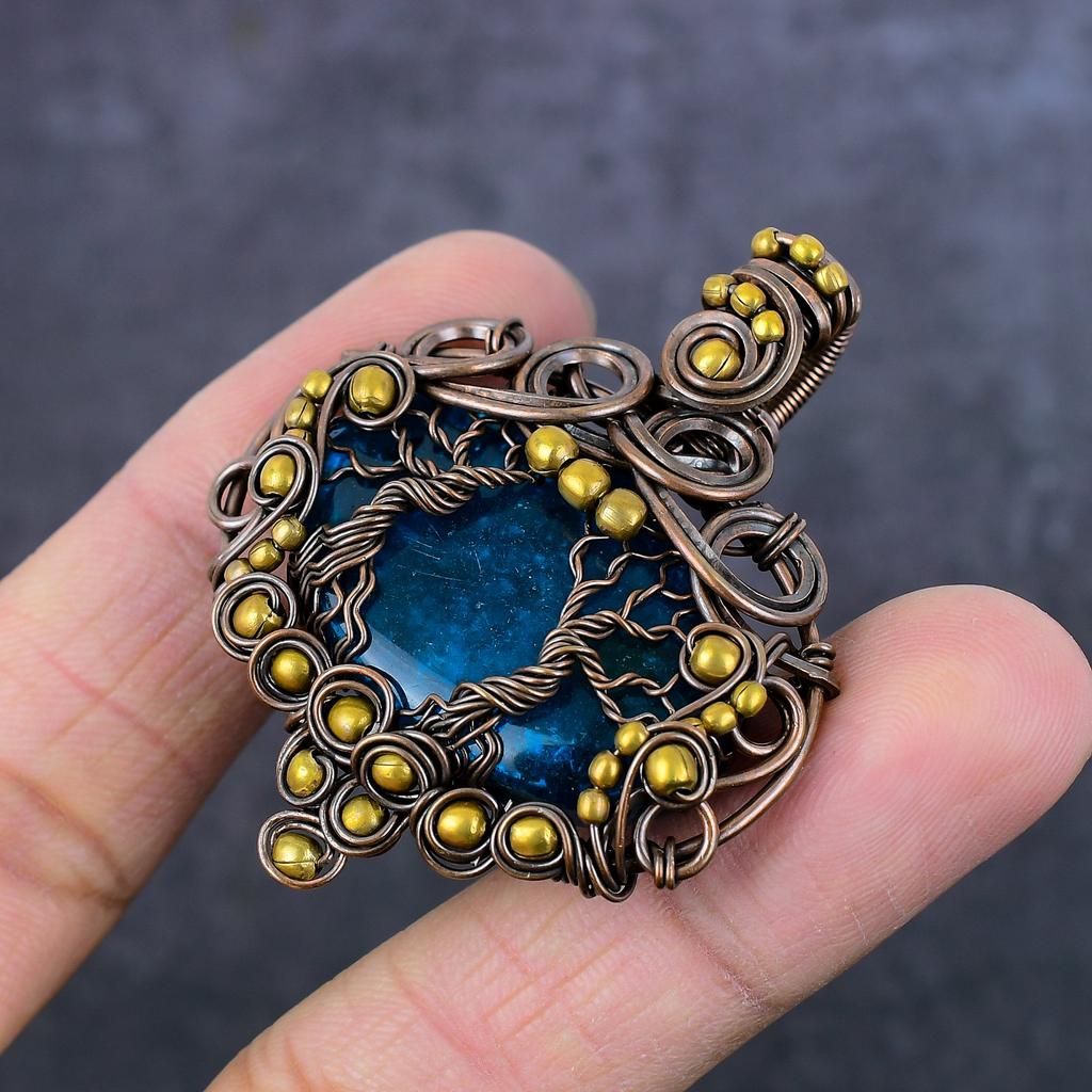 Ювелирный кулон ручной работы из медной проволоки из натурального синего балтийского янтаря 2,13 дюйма D3F77