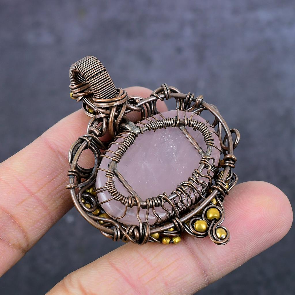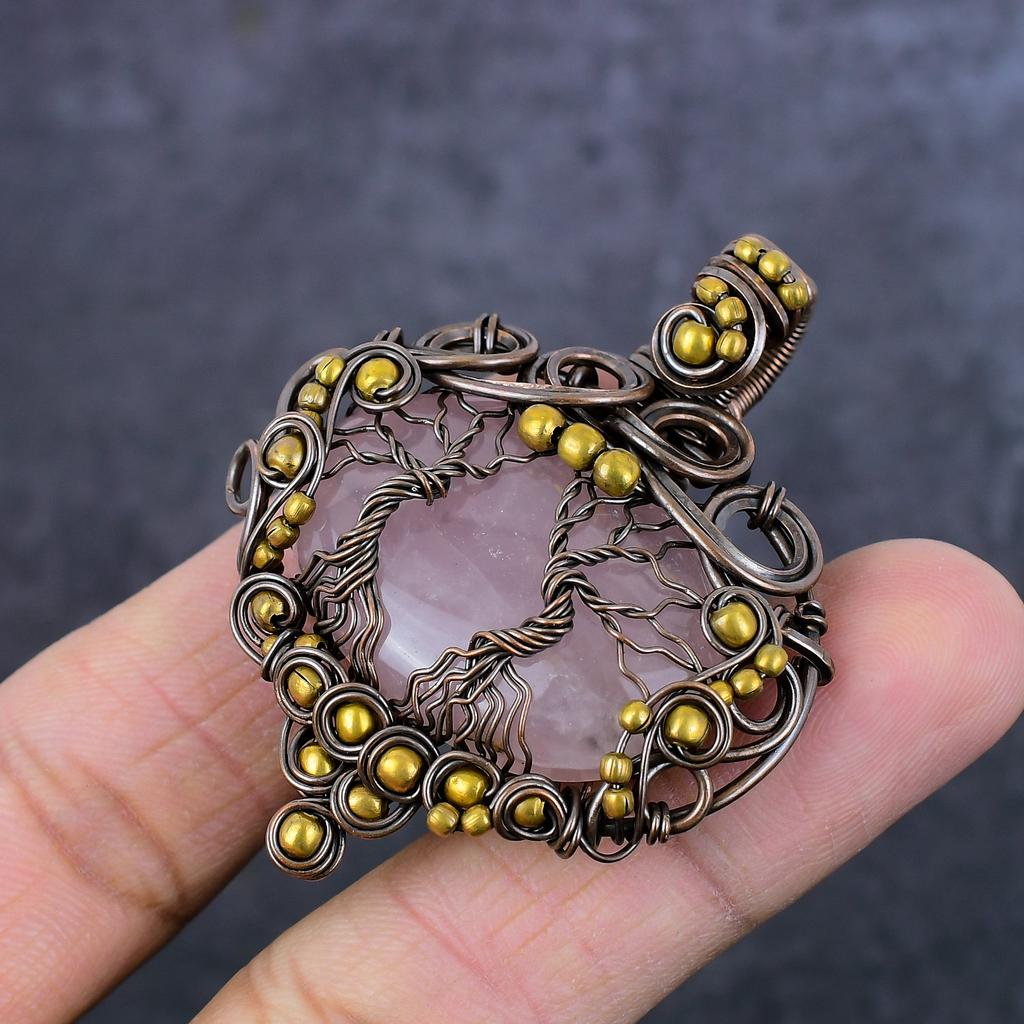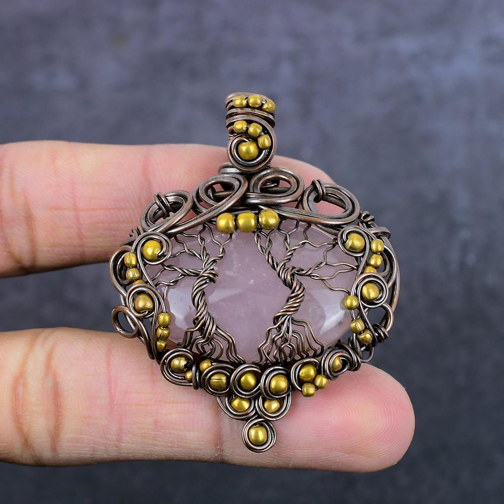 Подвеска в виде дерева жизни из натурального розового кварца ручной работы из меди 2,2 дюйма a0m44