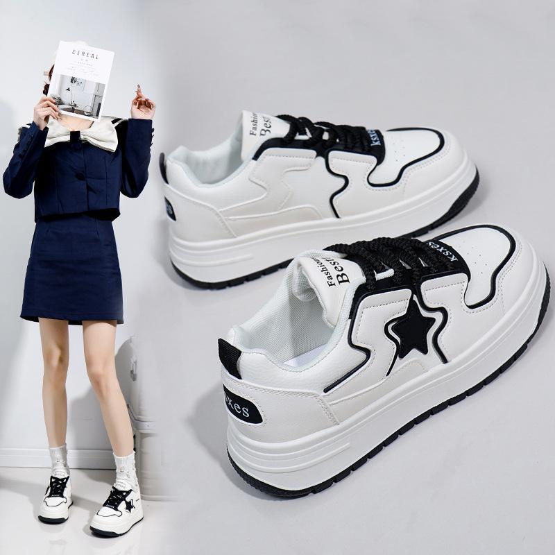 Женские белые легкие кроссовки на массивной платформе, нескользящие дышащие прогулочные туфли на шнуровке, спортивная обувь, повседневные кроссовки из искусственной кожи для женщин