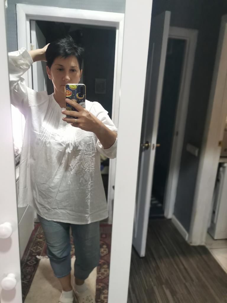 Рубашка пришла быстро. Лен, но тоненький. Брала специально на осень с длинным рукавом. В целом товар отличный, но большемерит. Манжет рукавов широкий. Но если пришить пуговку, будет отлично. Да и лишнюю ширину убрать от поймы, то же легко. Но вначале постираю. Такие вещи обычно сильно садятся.
