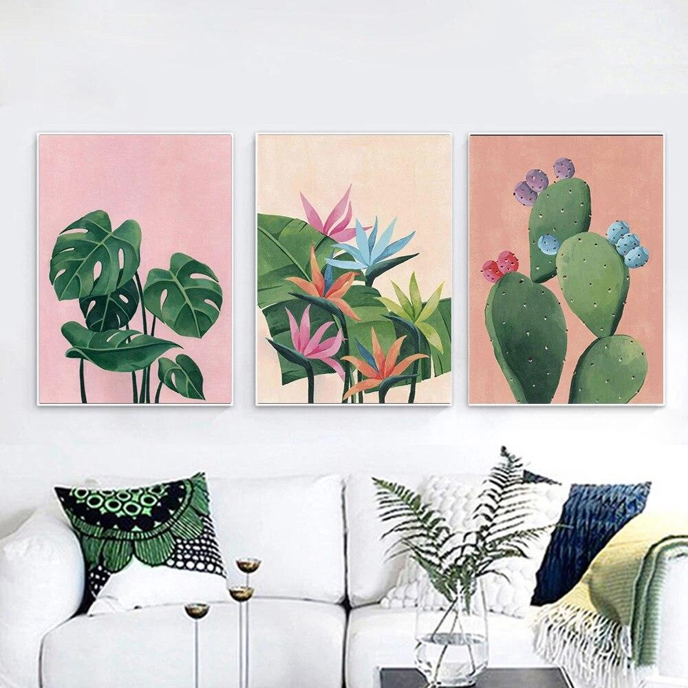 Ботанический кактус Монстера, настенная живопись на холсте, абстрактные растения, скандинавский постер и принт, женщина, кошка, фотографии, современный домашний декор, без рамки