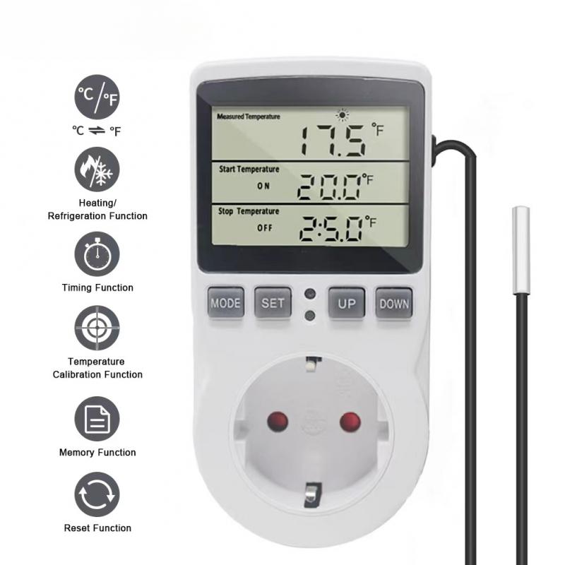 Цифровой регулятор температуры, термостат «день-ночь», розетка европейского стандарта с датчиком, таймер-регулятор для теплицы для рептилий, пивоварения, холодильника — купить товар онлайн с бесплатной доставкой по всему миру!