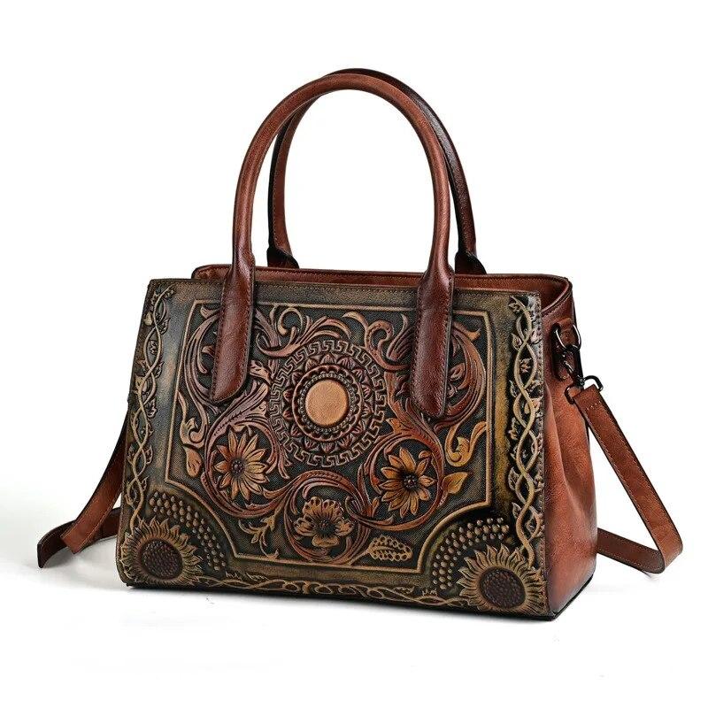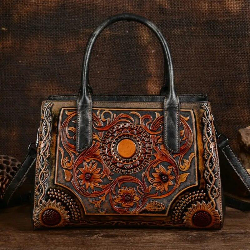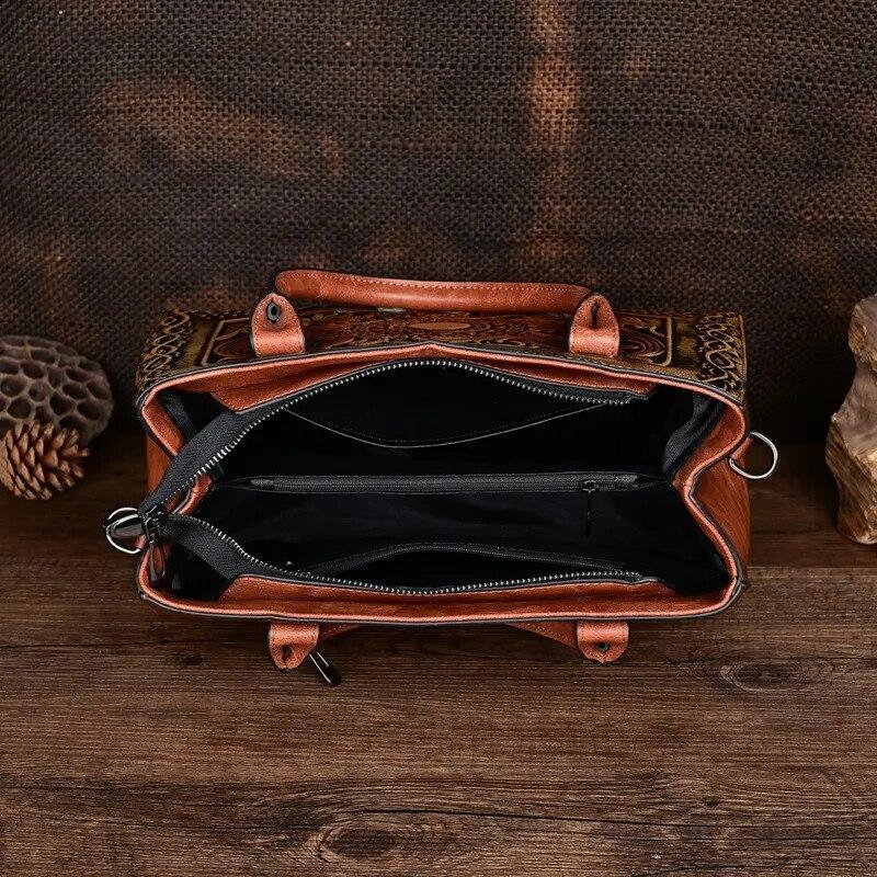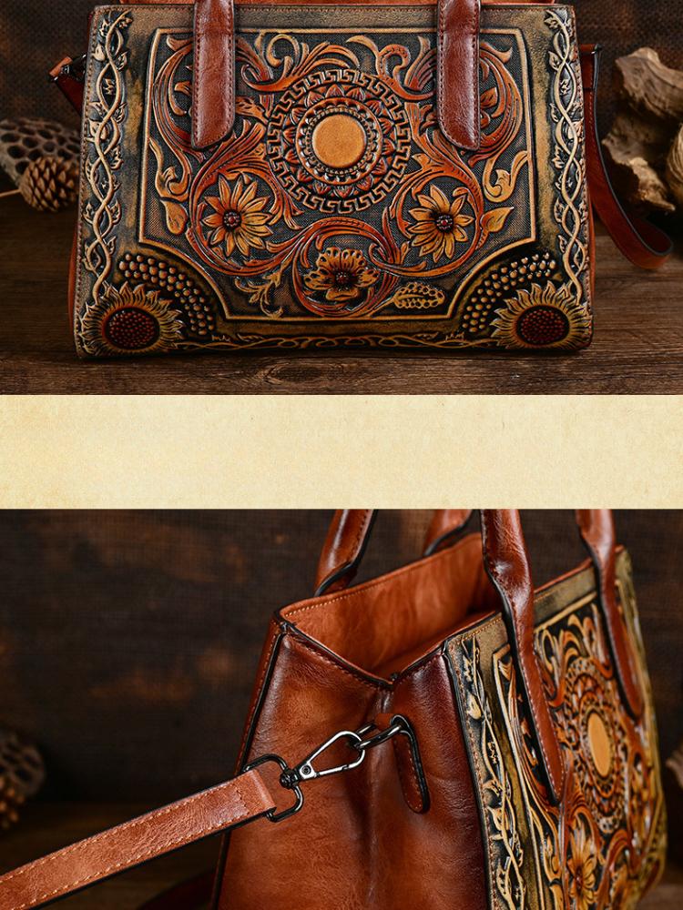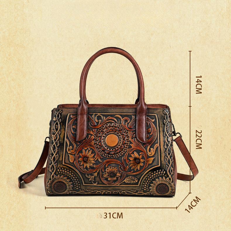 Johnature Изысканная женская кожаная сумка с тиснением в стиле ретро, универсальные сумки на ремне большой вместимости