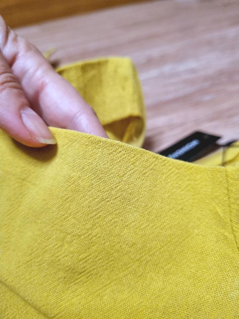 Фасон интересный . Но на объем груди 140 см ,ОТ 120 см - рукав узкий (сама я ношу размер 46-48),рука не полная ,таким образом ,он заворачивается в подмышечной впадине и мнется ( очень некрасиво ) ; горловина - воротничок стойка .Из-за того что ткань мягкая - воротник сворачивается .Обычно в ворот вставляют плотную ткань ,чтобы поддерживалась форма . Когда стала гладить ,то увидела на спинке пятна . Очень была огорчена . Ещё раз убедилась в том ,что в Joom ,как в лотерейном билете : повезет или нет .