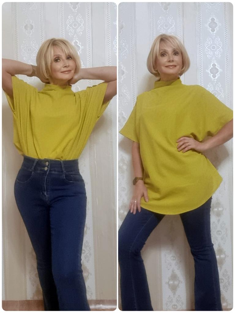 Ну неоднозначная вещь. На ОГ 135 натянула, но смотрится как простая футболка, к тому же почти облегающая. Никакого сходства с картинкой нету. К качеству претензий нет - швы норм, ткань очень тонкая, летом замечательно носить. Да, ворот своеобразный, но это и видно по картинке. Не знаю, что делать с вещью - на мне сидит плохо, не нравится. В принципе, расширить по бокам без проблем, но надо ли? Буду думать.