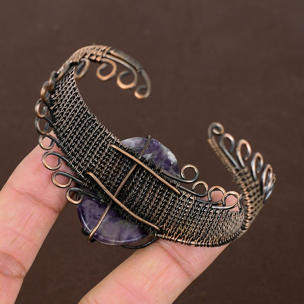 Натуральный аметист, драгоценный камень, браслет ручной работы из медной проволоки, регулируемый j4z56