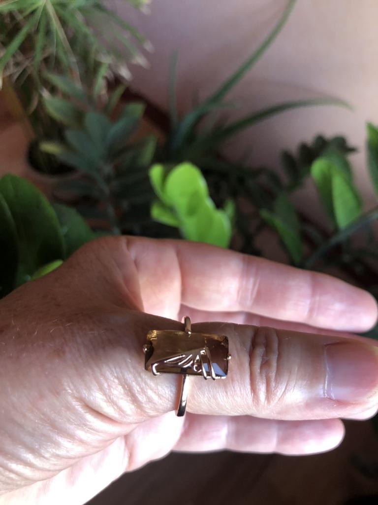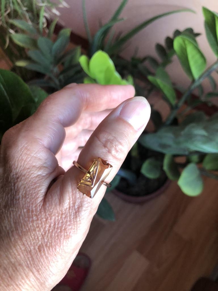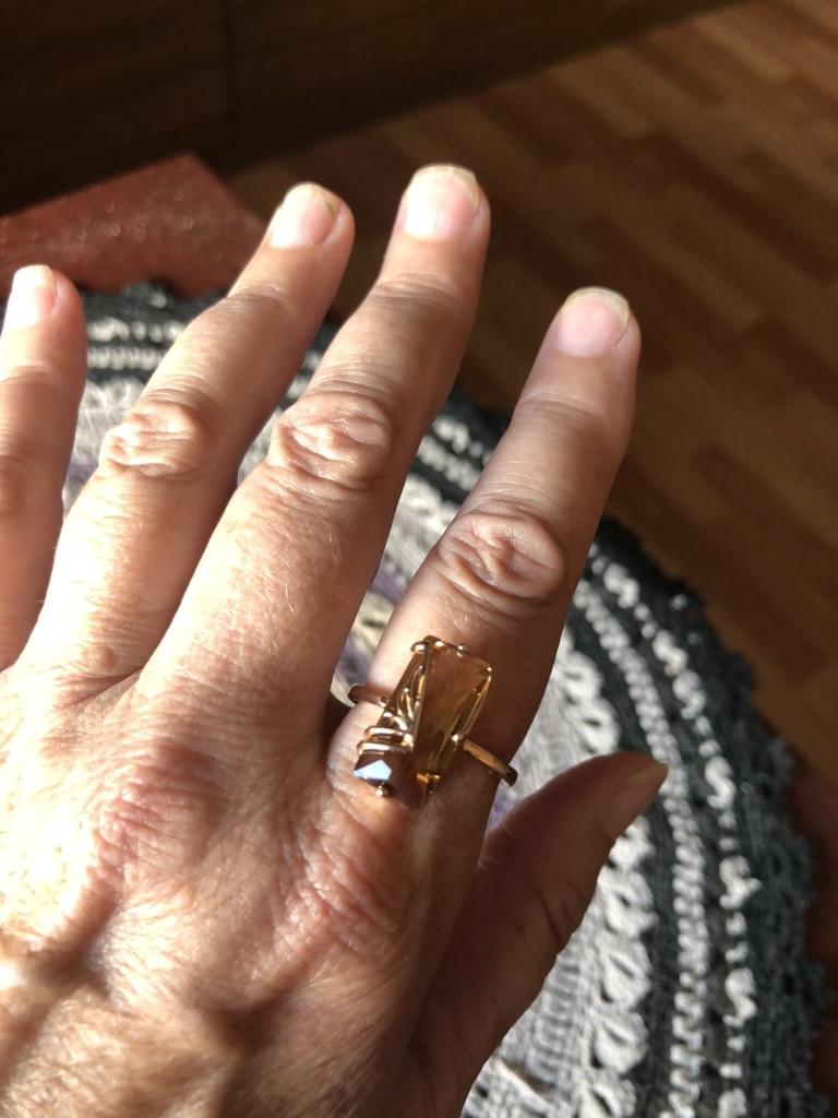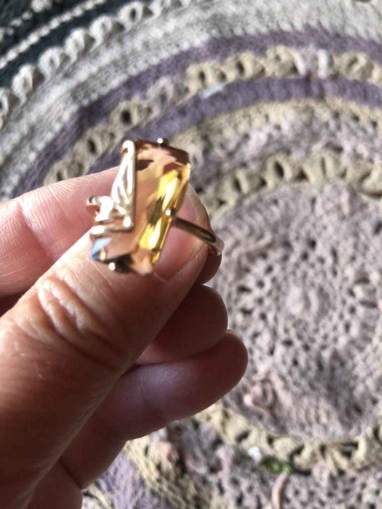 Кольцо красивое, по размеру подошло. Я купила комплект: кольцо, серьги и ожерелье с подвеской. Бывает всякая бижутерия, но эту не отличишь от золота. Понятно, что со временем может почернеть, облезть😂😂😂. Но сейчас очень красиво выглядит, камень чайного цвета с инкрустацией. Купила за 249₽. Пока не носила колечко, да и весь комплект..