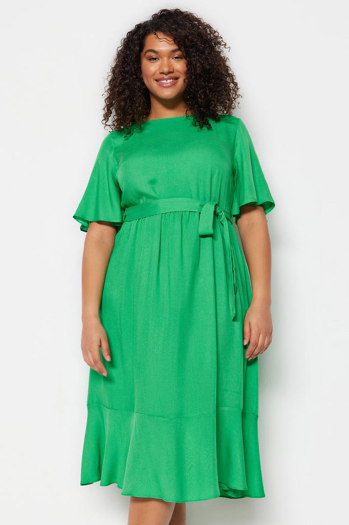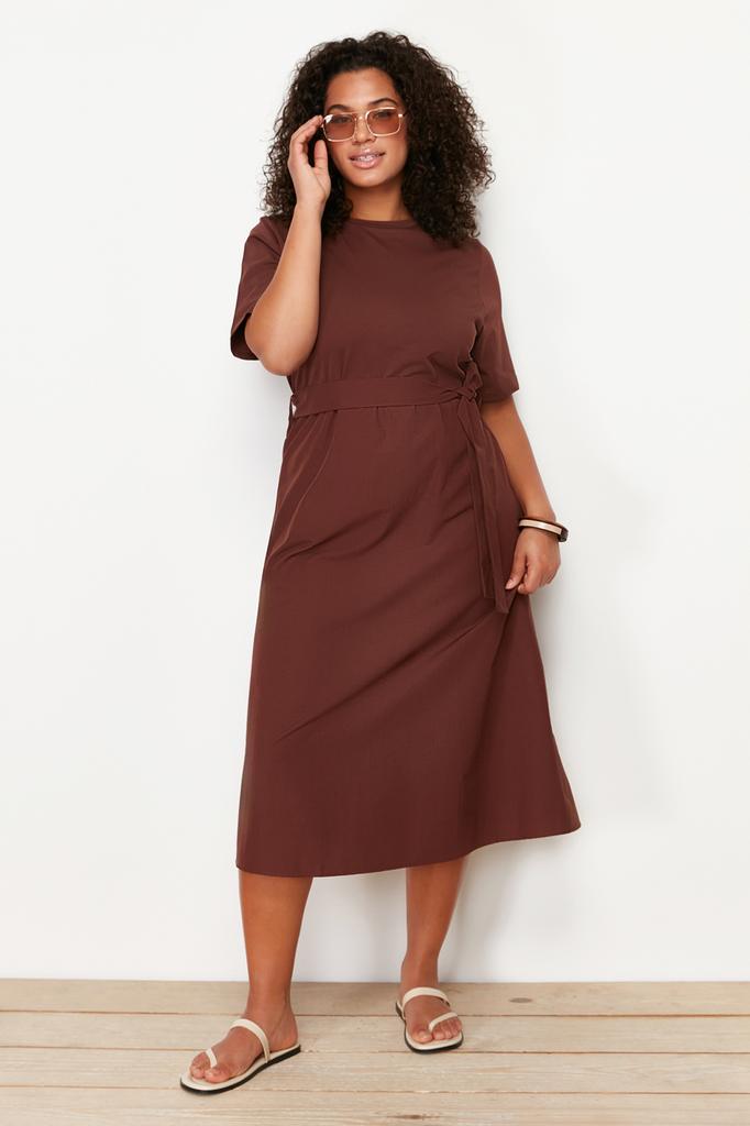Женское модное повседневное миди-коричневое тканое платье трапециевидной формы с короткими рукавами