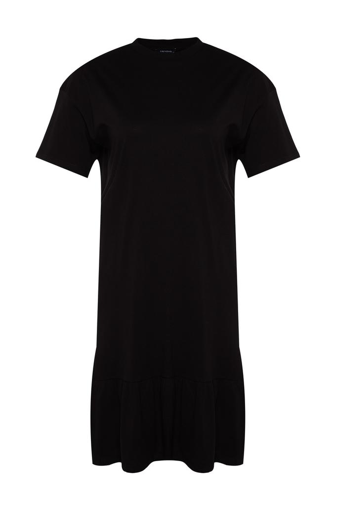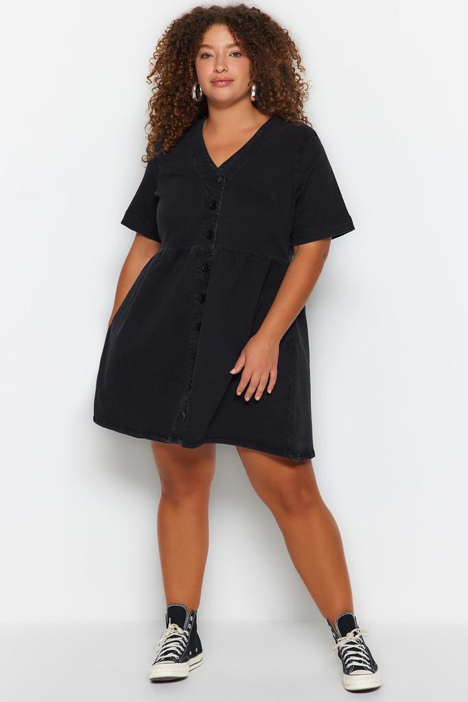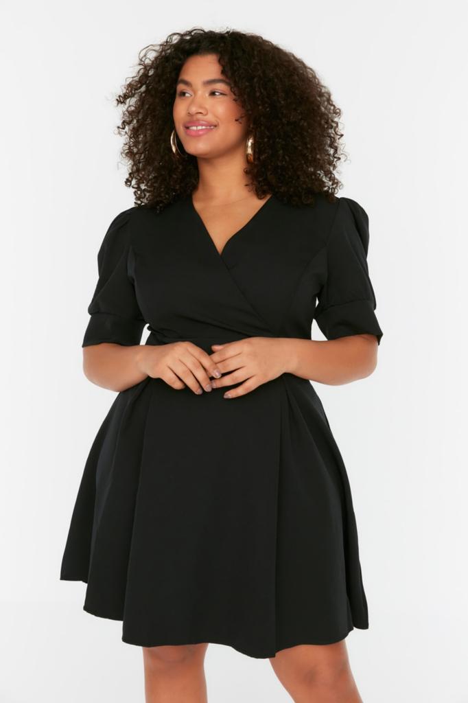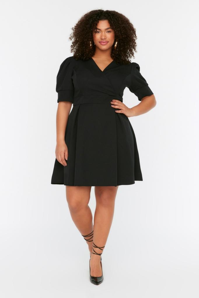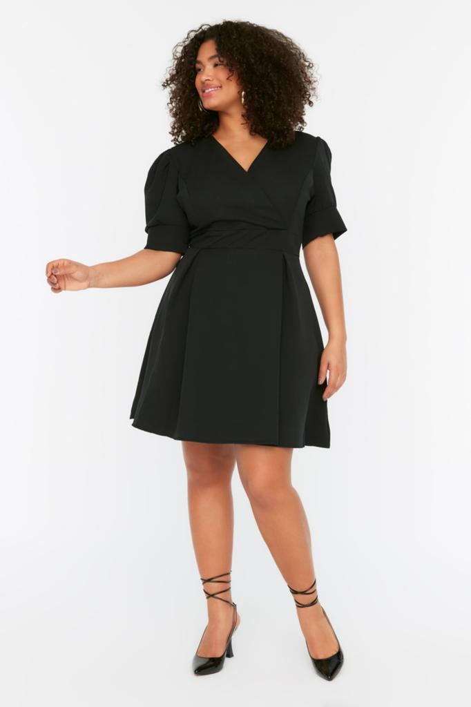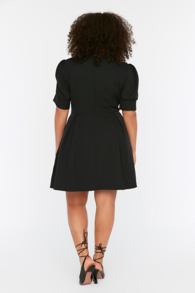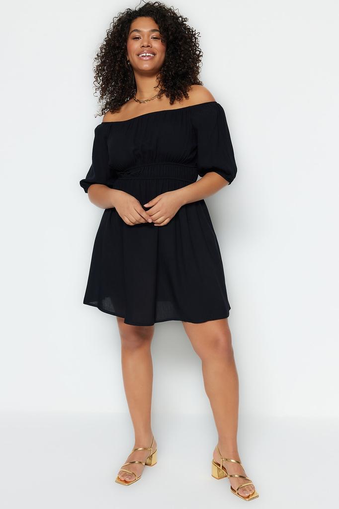 Женское модное повседневное мини-черное мини-платье с коротким рукавом и воротником «кармен» с подробными деталями на талии
