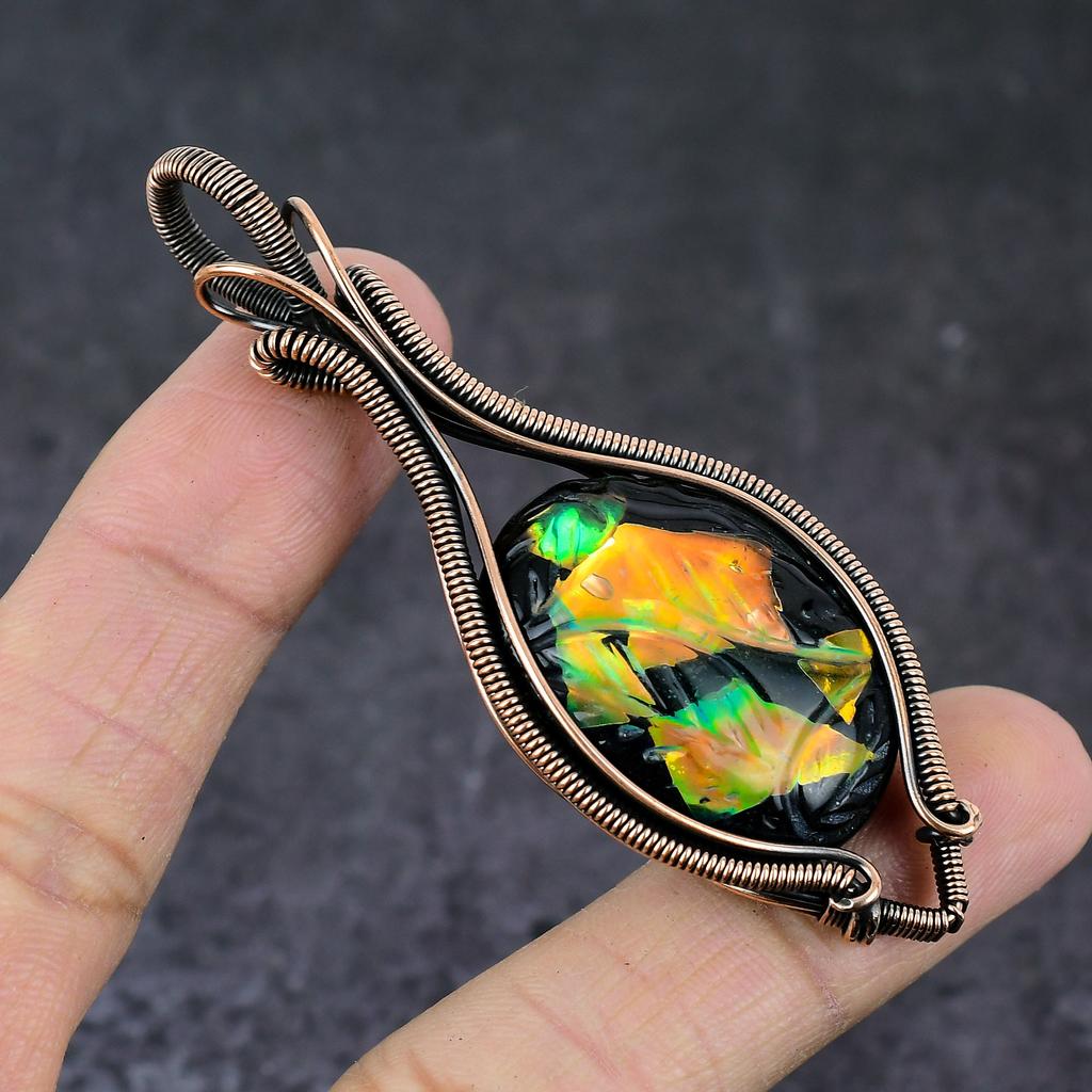 Кулон ручной работы из медной проволоки с натуральной резьбой, аммолит, 3,15 дюйма, W1S73