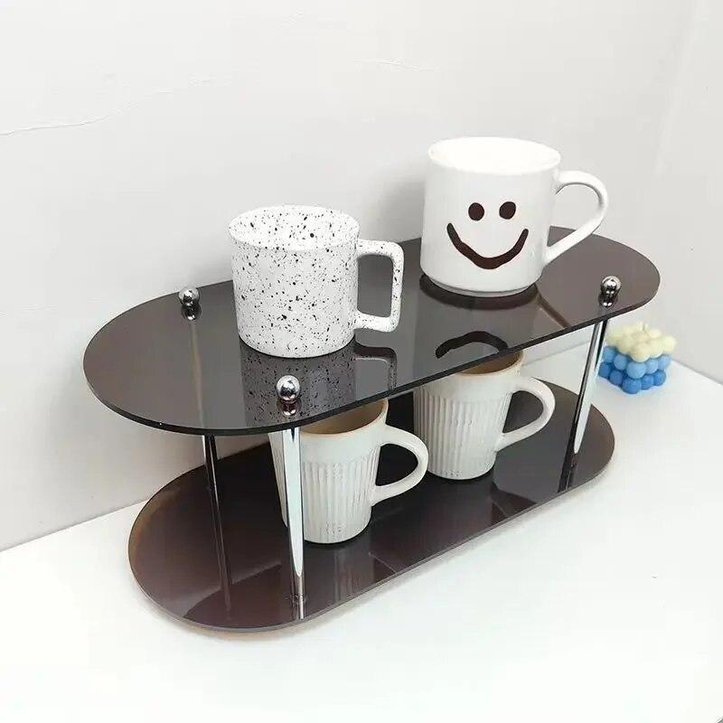 Акриловая полка для чашек, столешница, стеллаж для хранения косметики, настольный дисплей для чашек, многослойный держатель для кофейных чашек, декор