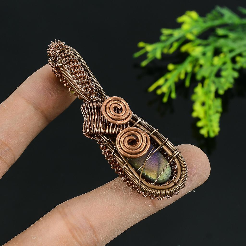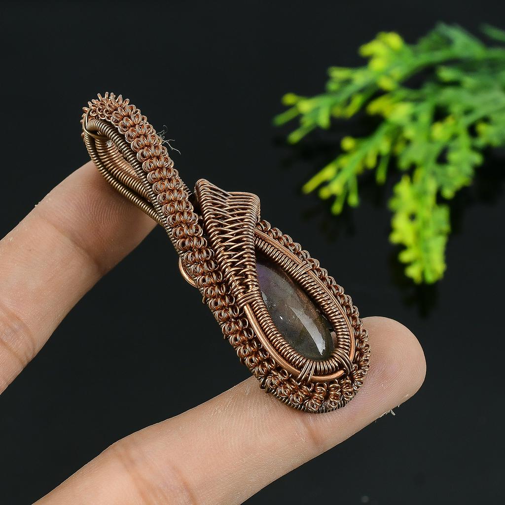Натуральный лабрадорит, драгоценный камень, медная проволока ручной работы, подарочная подвеска 2,25