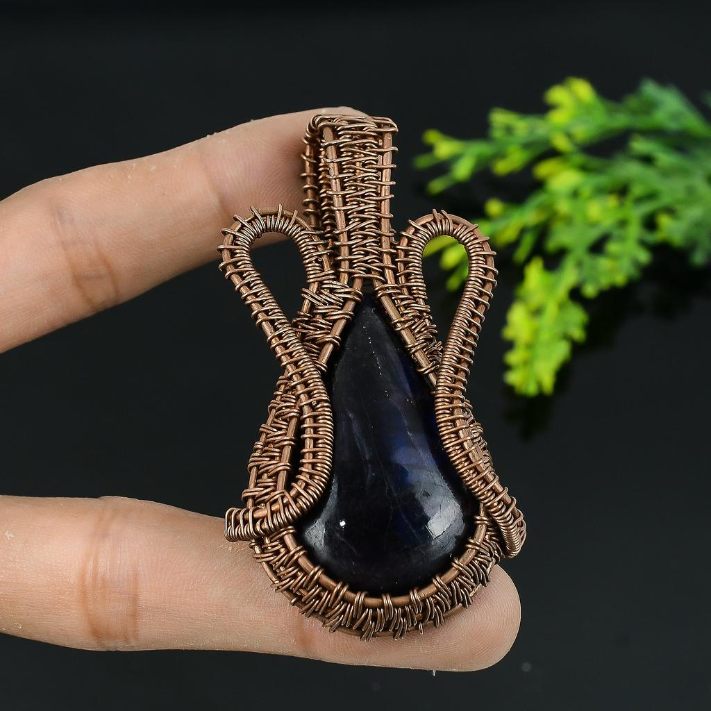Натуральный лабрадорит, драгоценный камень, медная проволока ручной работы, подарочная подвеска 2,75