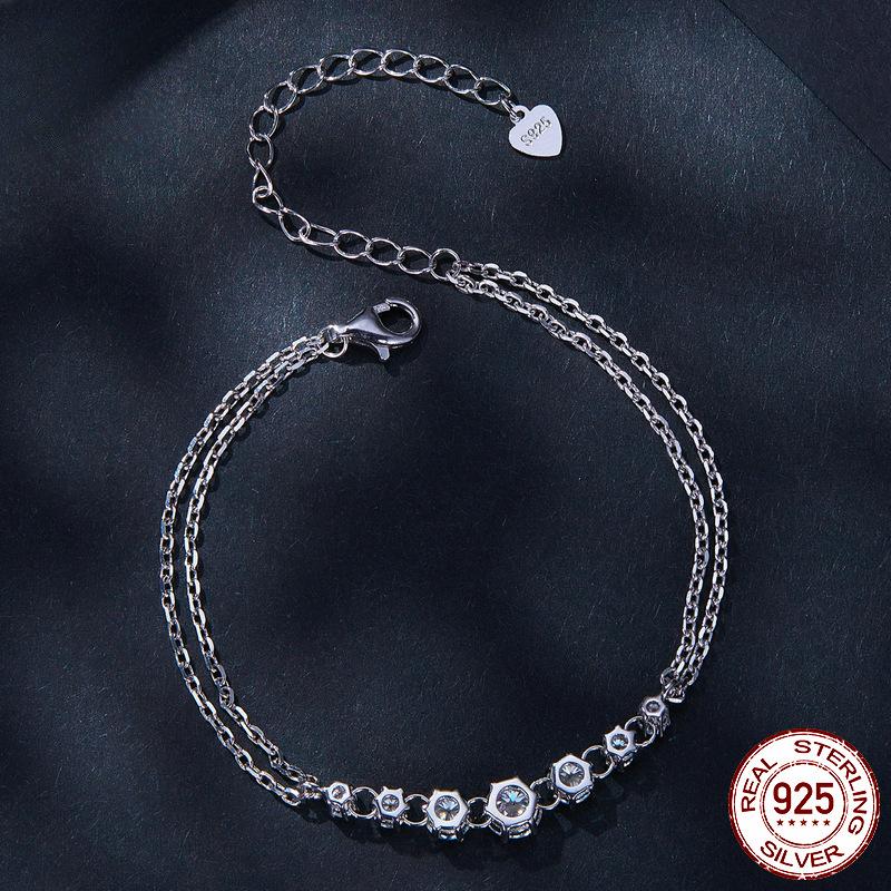Новый модный 50-точечный браслет из муассанита, простой, легкий, роскошный стиль, двухслойный браслет из стерлингового серебра S925, ювелирные изделия