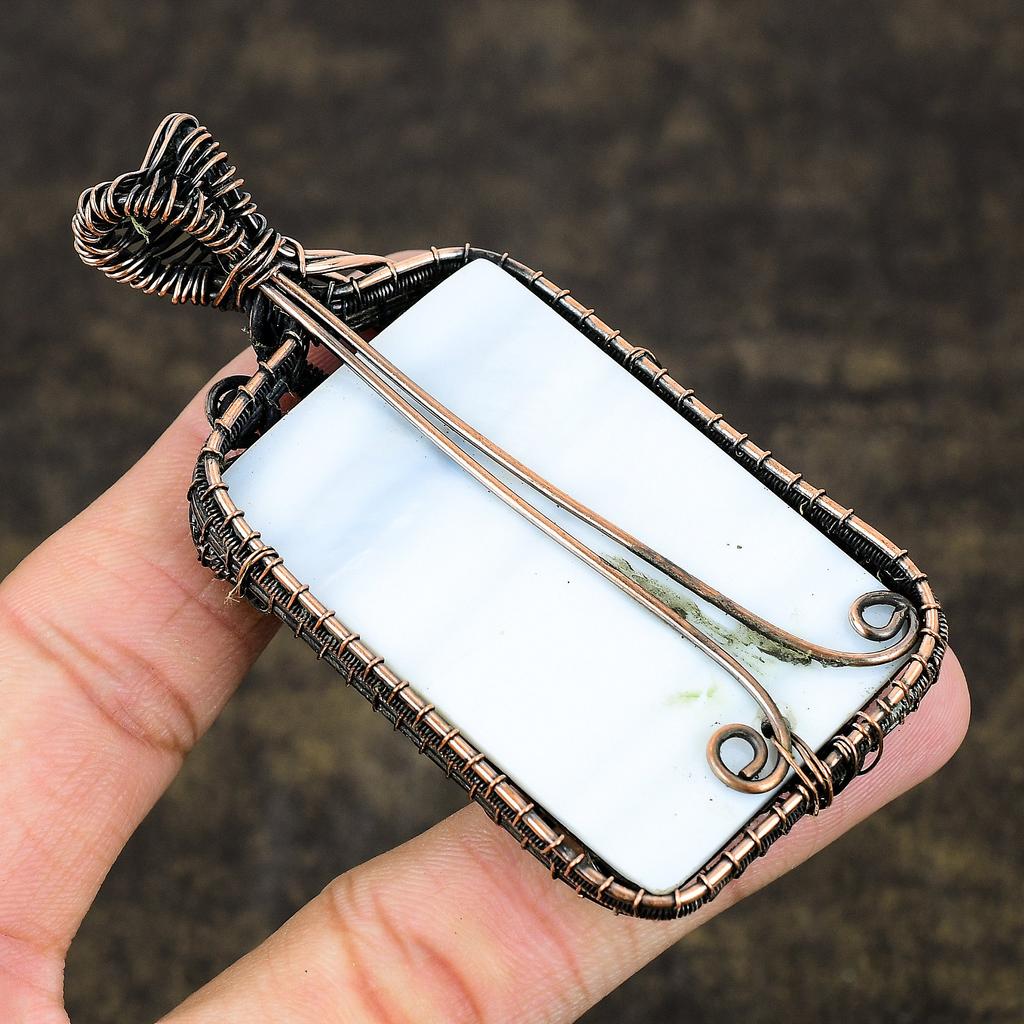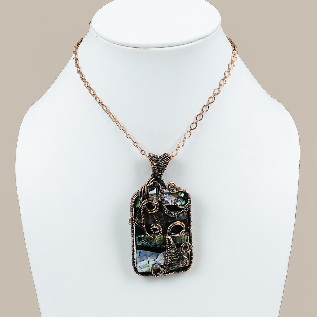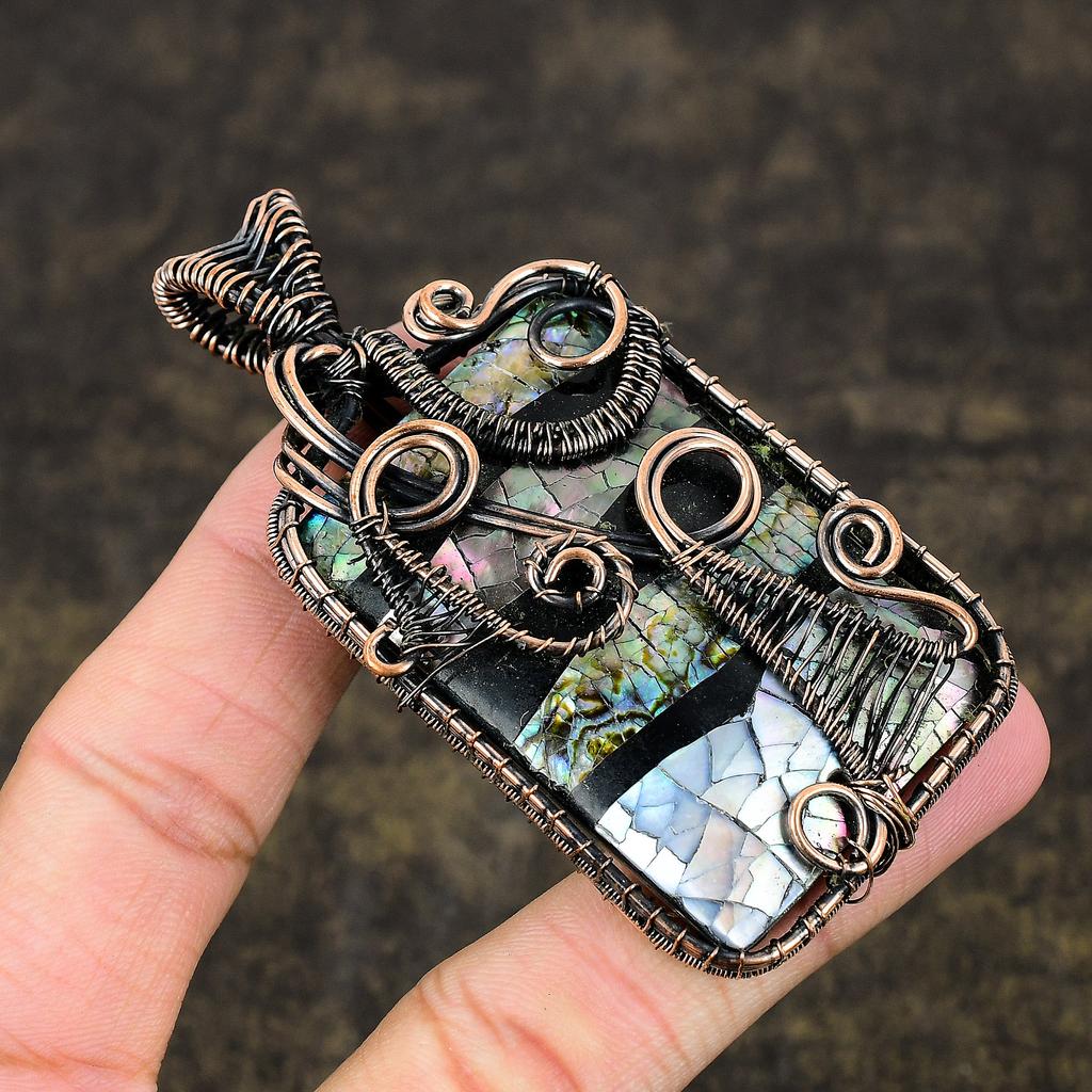 Подвеска из медной проволоки ручной работы из натурального морского ушка с драгоценным камнем 3,19 F3q08