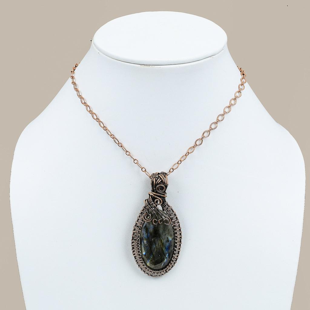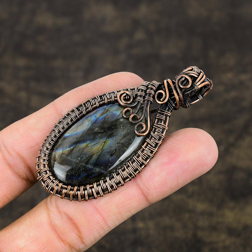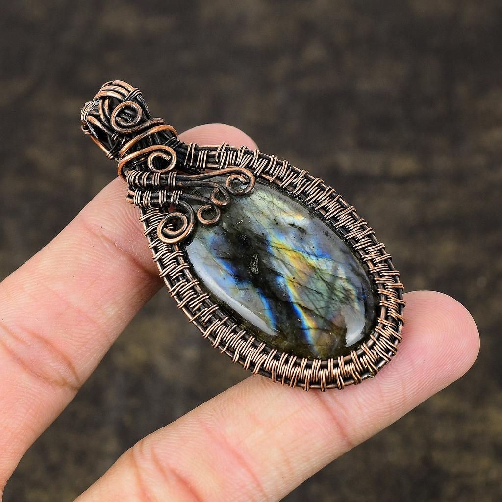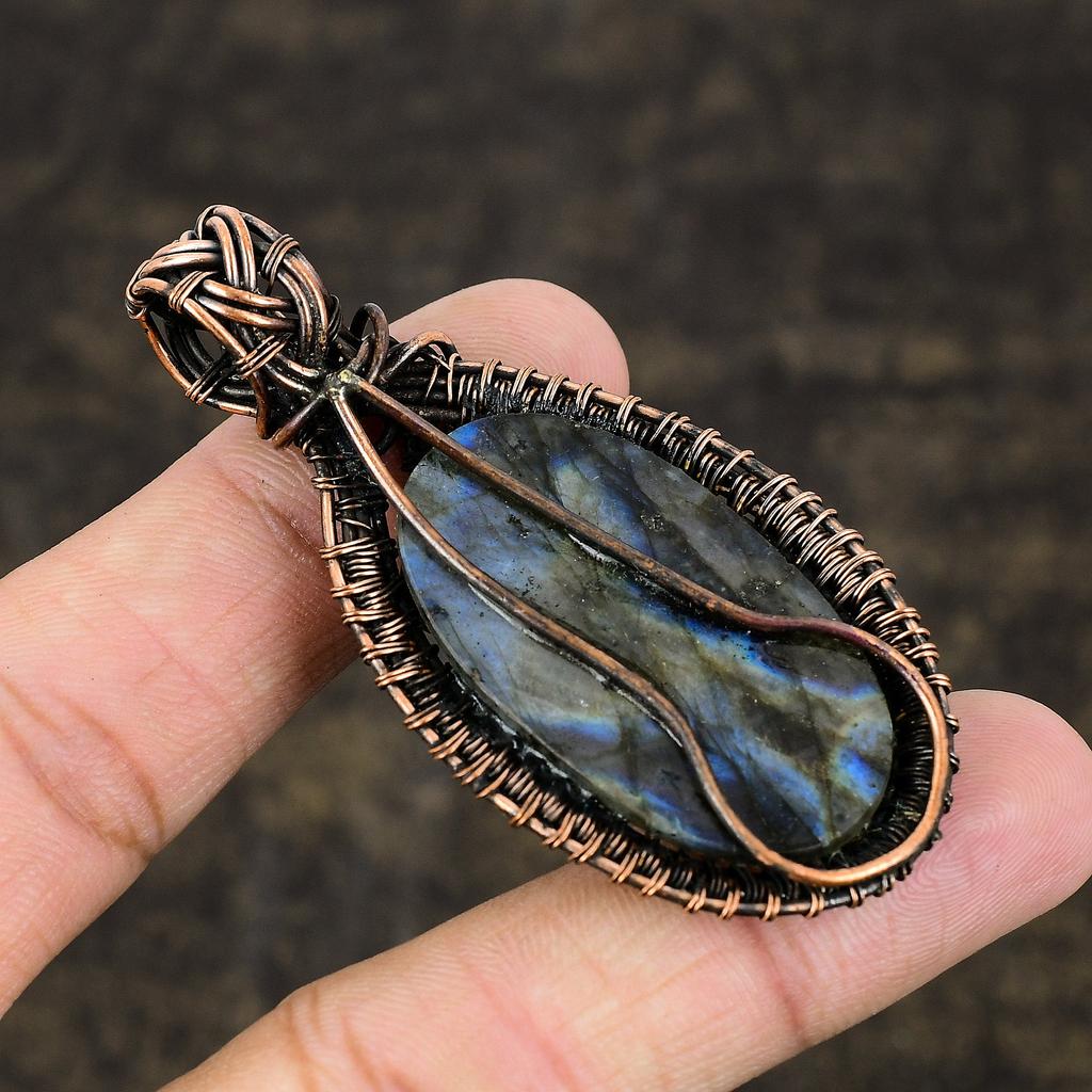 Натуральный лабрадорит, драгоценный камень, медная проволока ручной работы, подарочная подвеска 2,6 G5R77