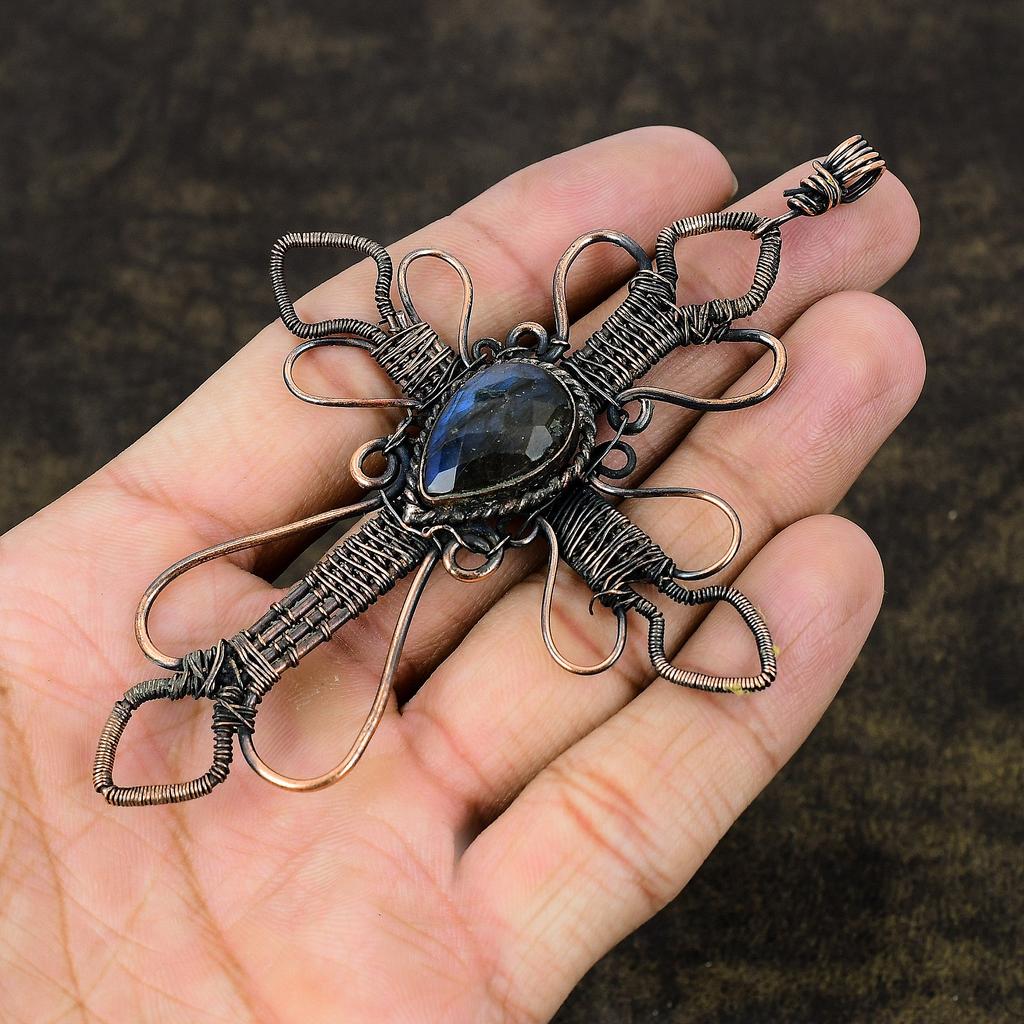 Натуральный лабрадорит, драгоценный камень, медная проволока, подарочная подвеска-крестик 4,33 n4Q71