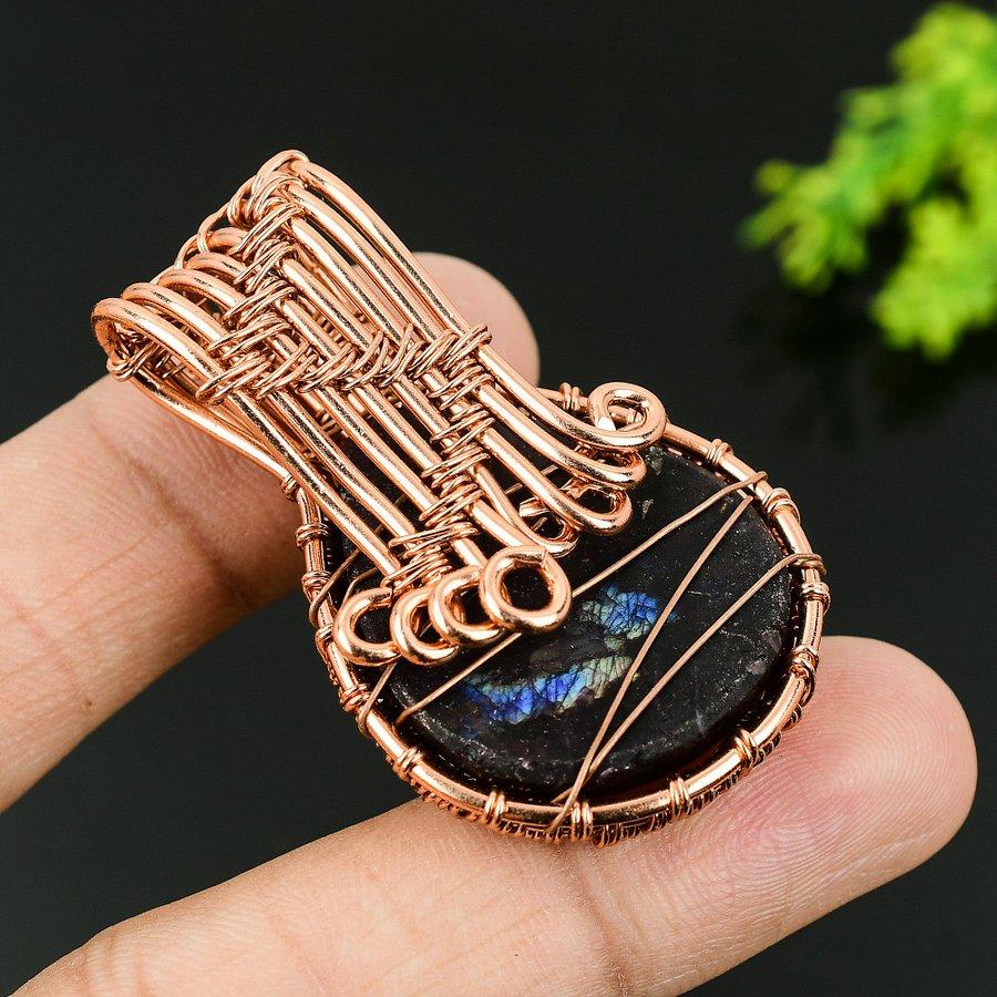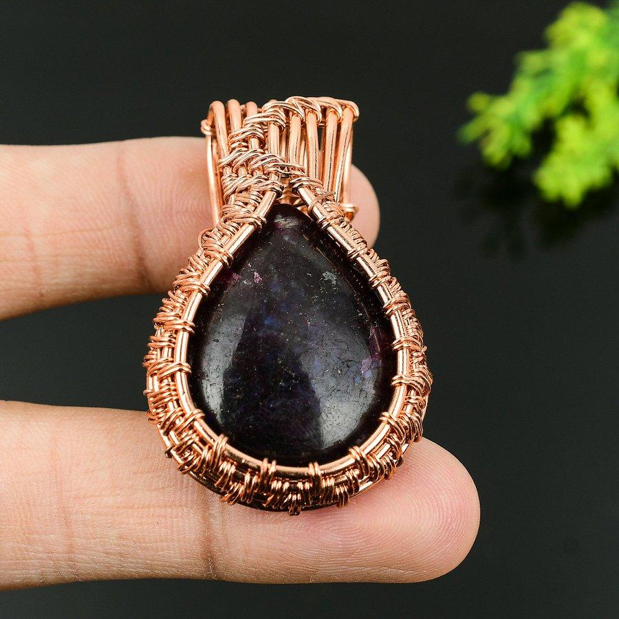 Натуральный драгоценный камень лепидолит, подарочная подвеска ручной работы из медной проволоки 2,17 Z3U65