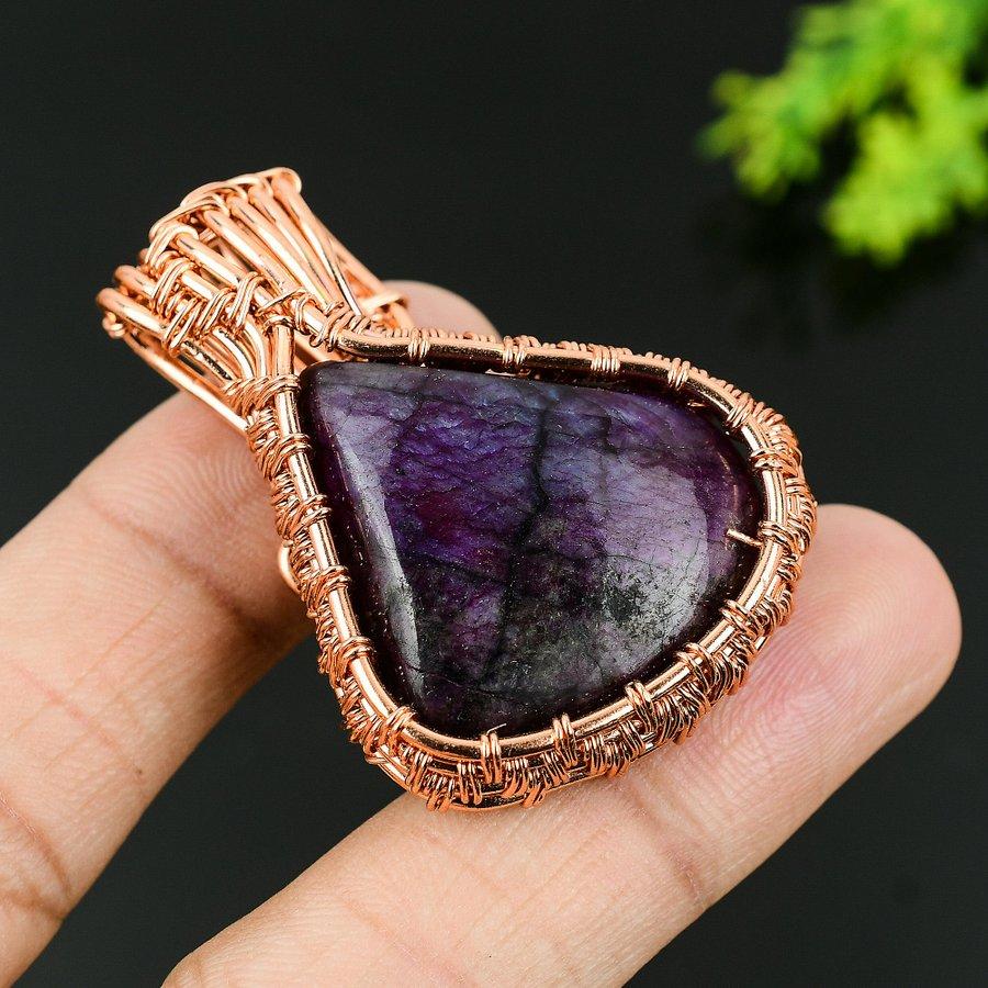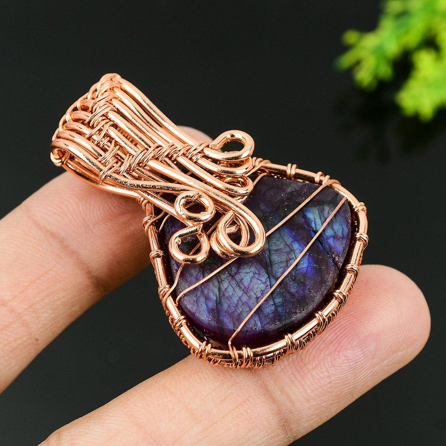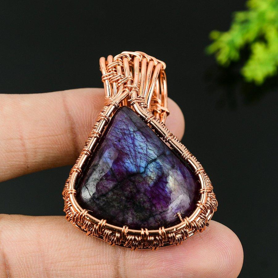 Натуральный фиолетовый лабрадорит, драгоценный камень, медная проволока, подарочная подвеска 1,97 G6o75