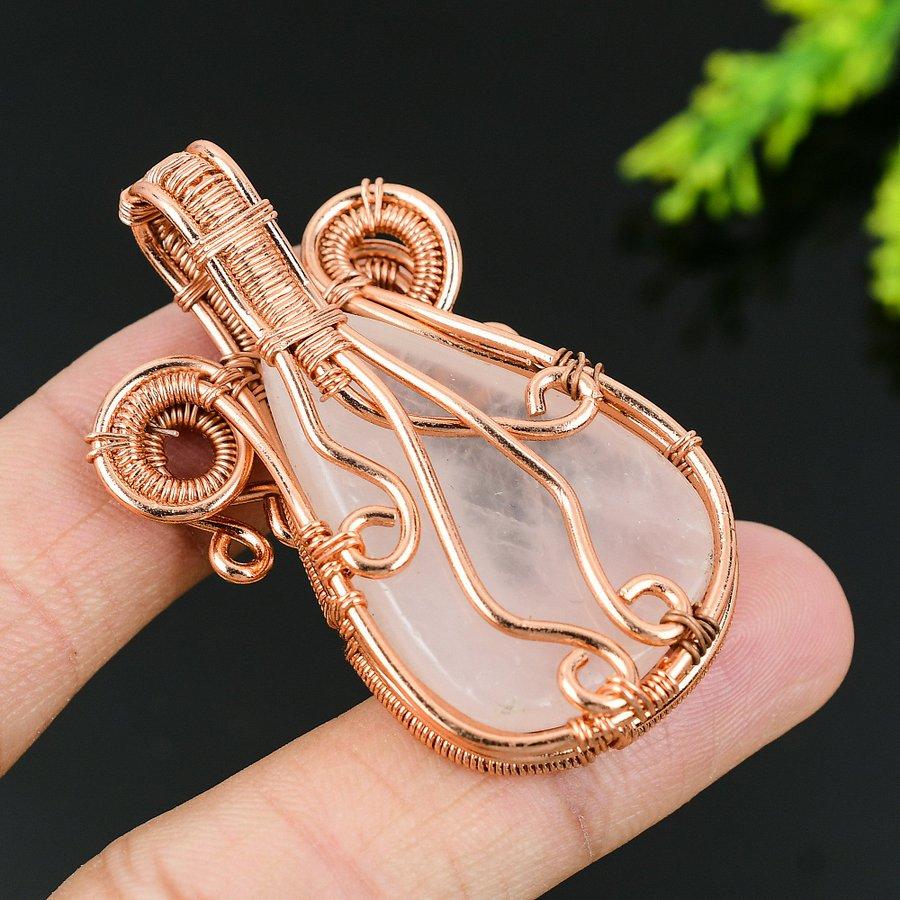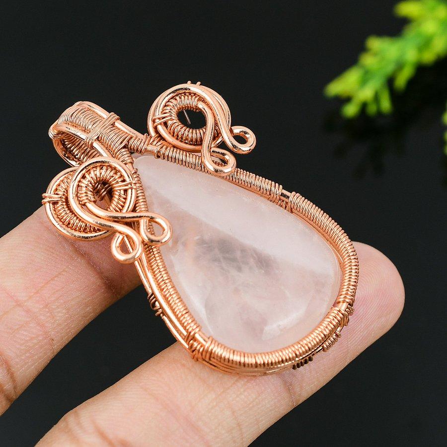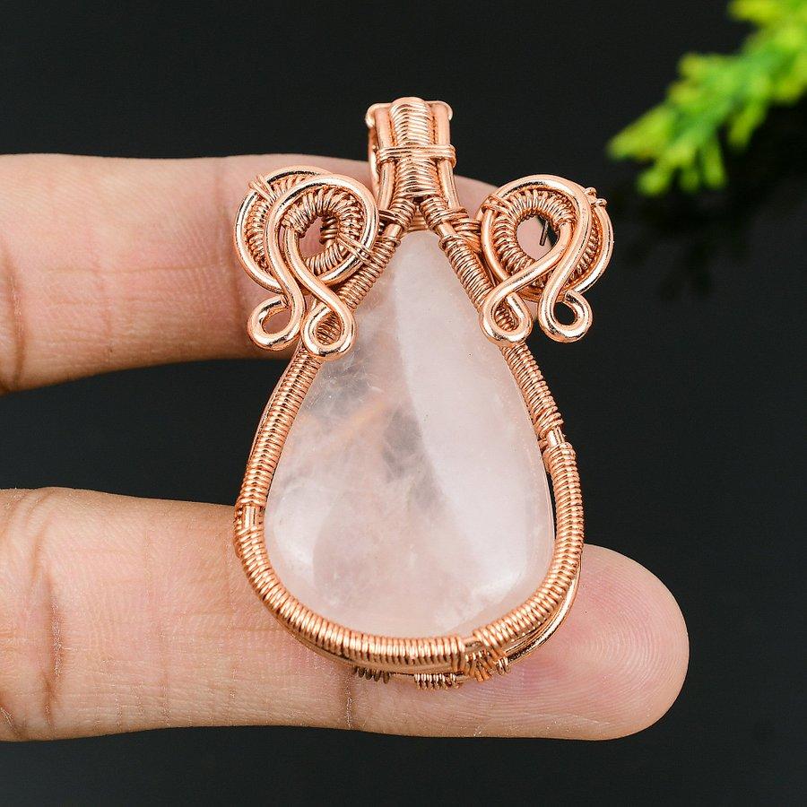 Натуральный розовый кварц, драгоценный камень, медная проволока ручной работы, подарочная подвеска 2,17 E7O93