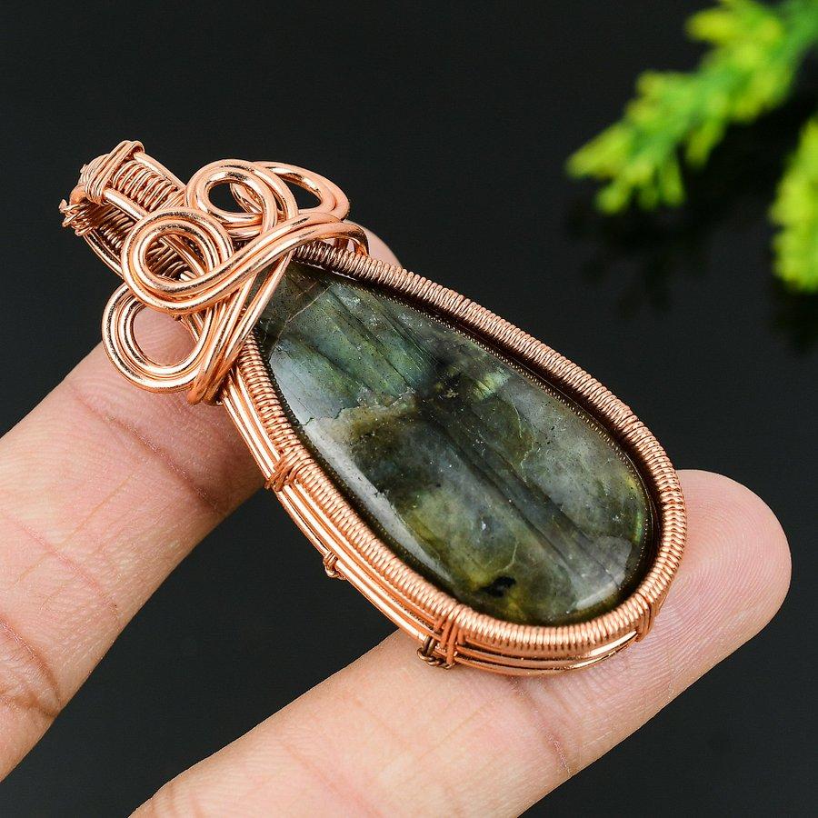 Подвеска из натурального лабрадорита, ручная работа, медная проволока, подарочный кулон 2,56 n5R50