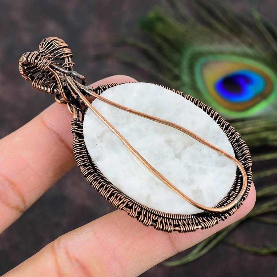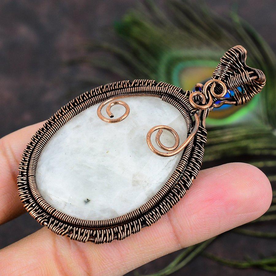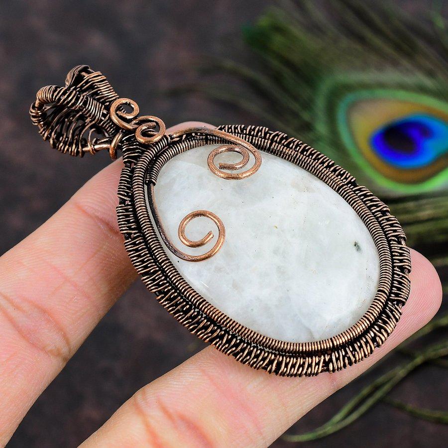Натуральный радужный лунный камень, драгоценный камень, медная проволока, подарочная подвеска 2,96 A1e49