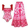 2024 Двусторонний цельный купальник с завязками на плечах в стиле бароко с принтом и юбка, комплект женской пляжной одежды, роскошный купальный костюм