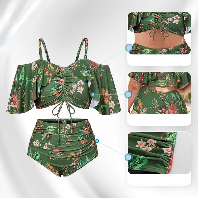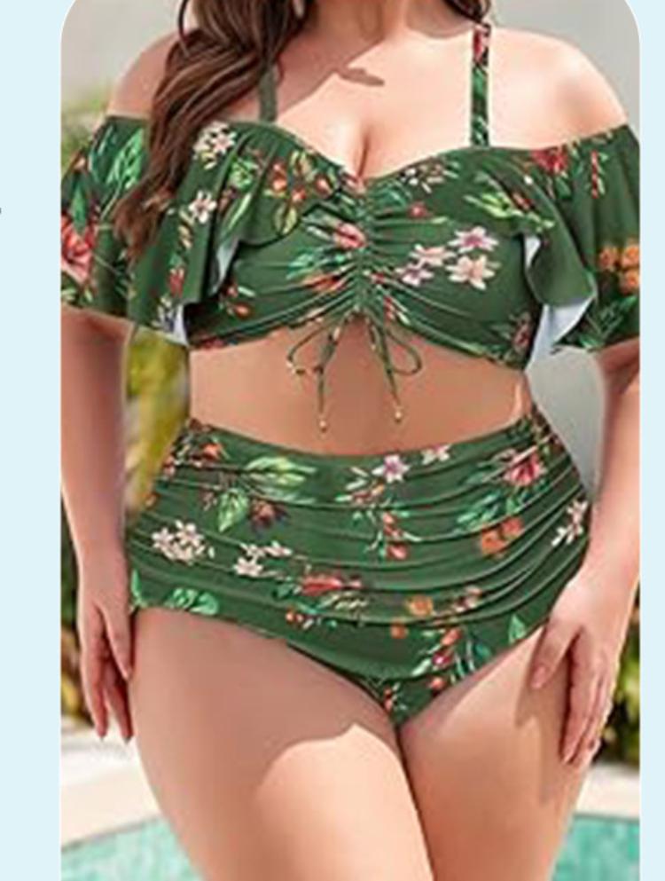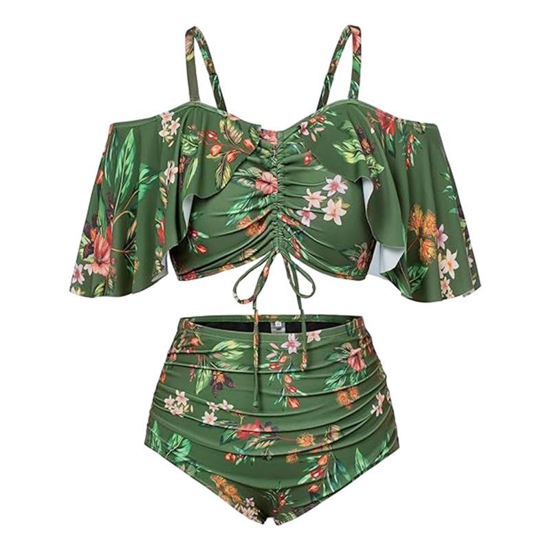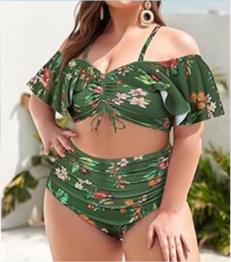Комплект бикини больших размеров для полных женщин, новинка 2024 года, эластичный сексуальный купальник, женский купальник высокого качества из полиэстера, женский купальный костюм с принтом, женский летний купальник