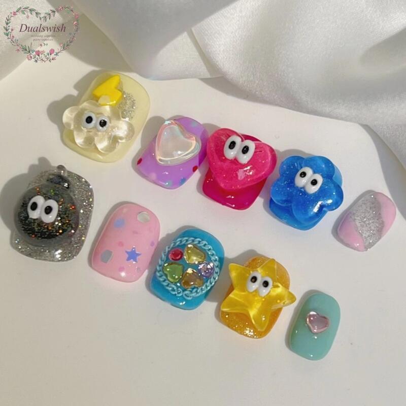 Конфеты дофамина, мультяшные милые ногти ручной работы, забавные детские забавные маленькие глазки, милые и крутые съемные украшения для ногтей