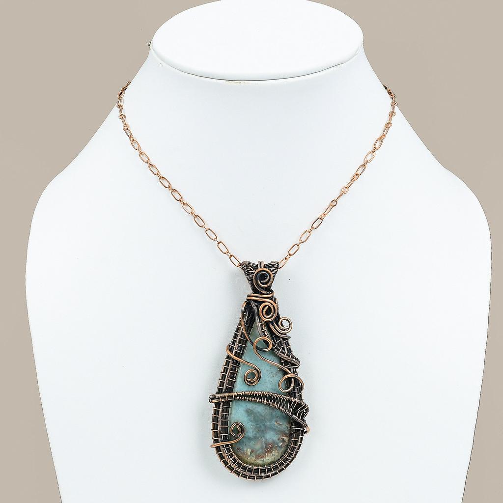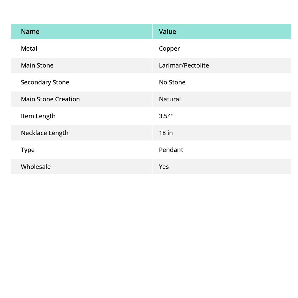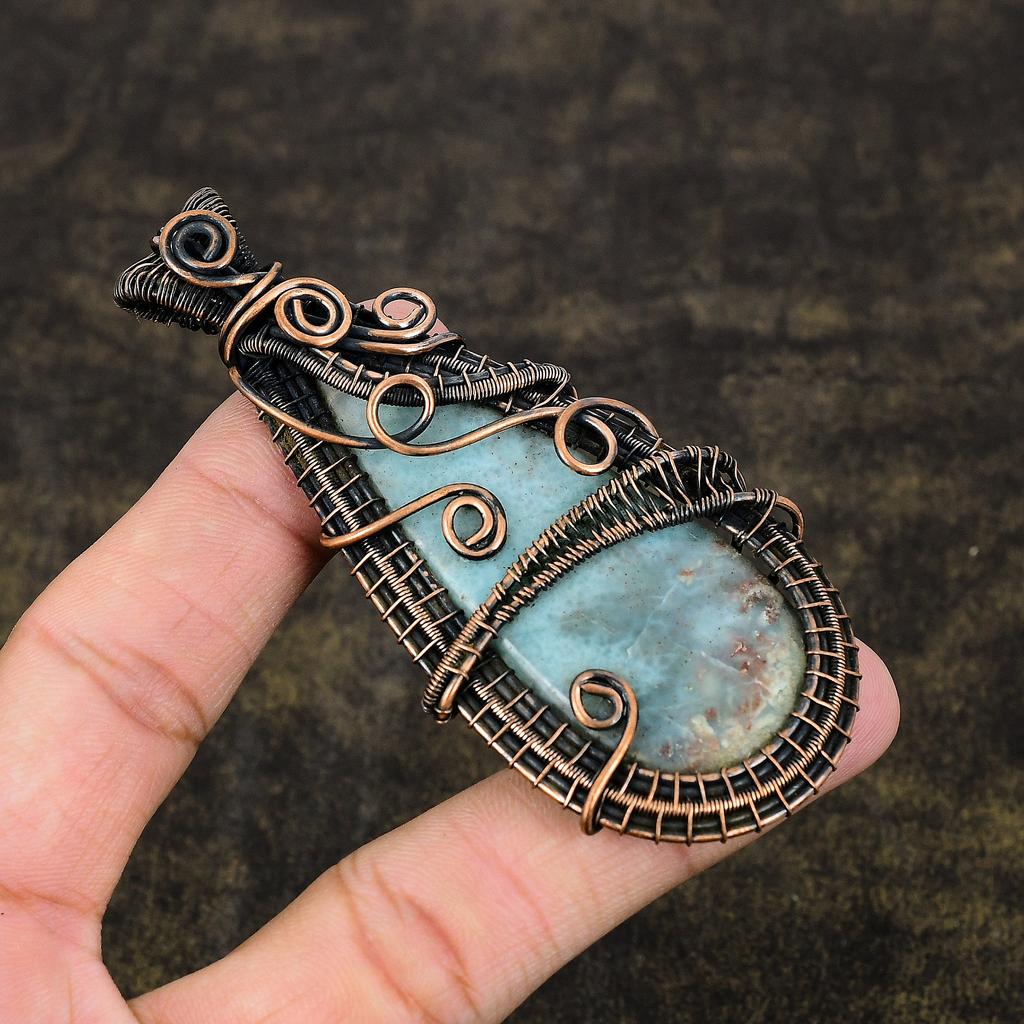 Подарочный кулон в обертке из медной проволоки из натурального карибского ларимара с драгоценным камнем 3,54 дюйма