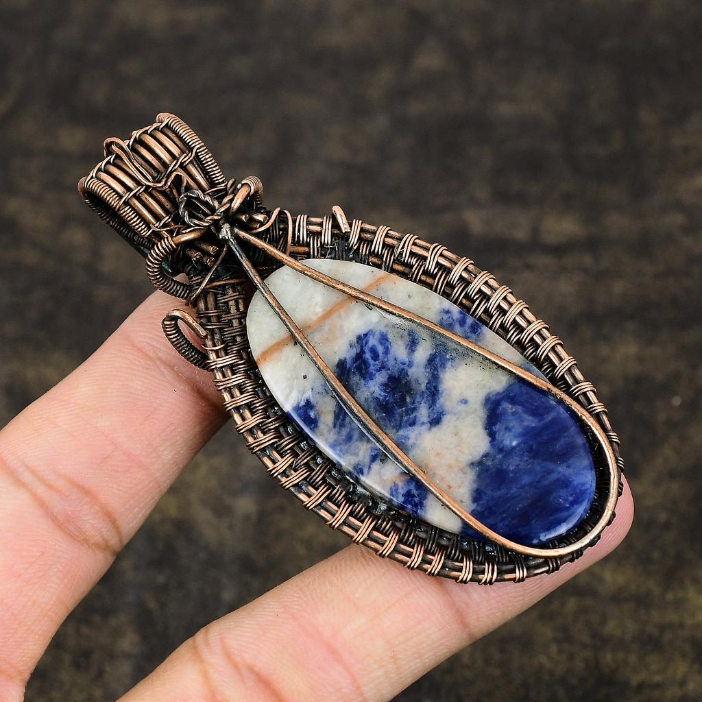 Драгоценный камень содалит, медная проволока ручной работы, подарочная ювелирная подвеска 3,27 дюйма v9y47