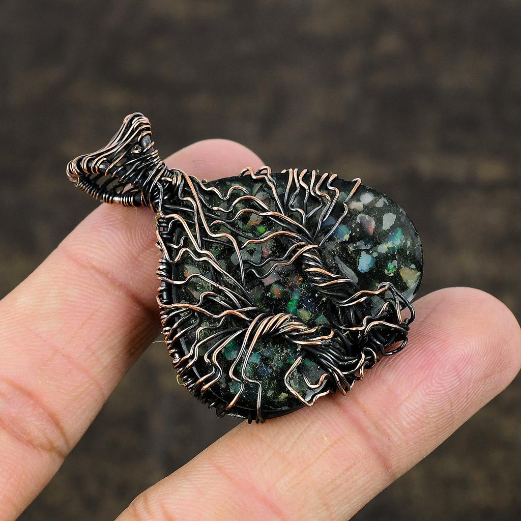 Подвеска из медной проволоки с натуральным австралийским тройным опалом, размер 2,05 дюйма, B1d48