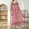 Новое хлопковое атласное платье с коротким рукавом больших размеров в винтажном стиле с цветочным принтом для женщин, повседневное свободное длинное летнее платье