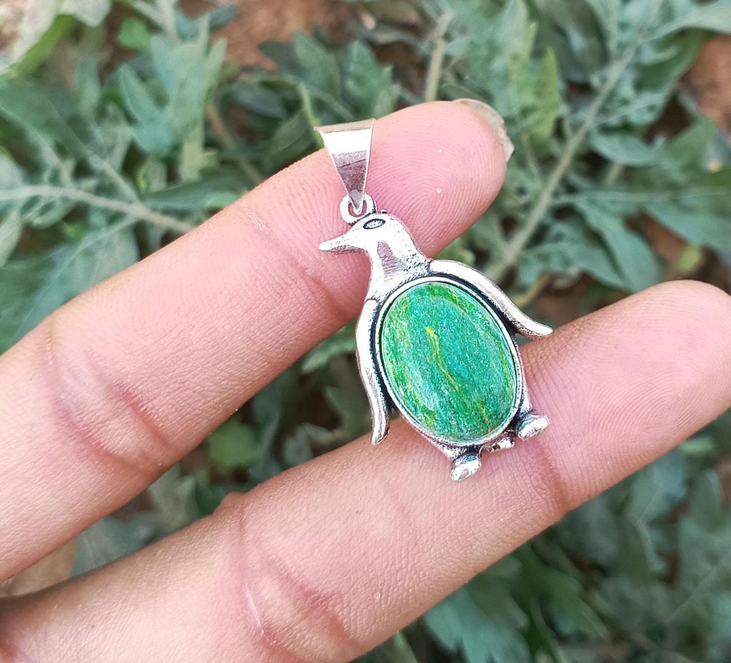 Подвеска с пингвином из стерлингового серебра 925 пробы с авантюрином и драгоценным камнем