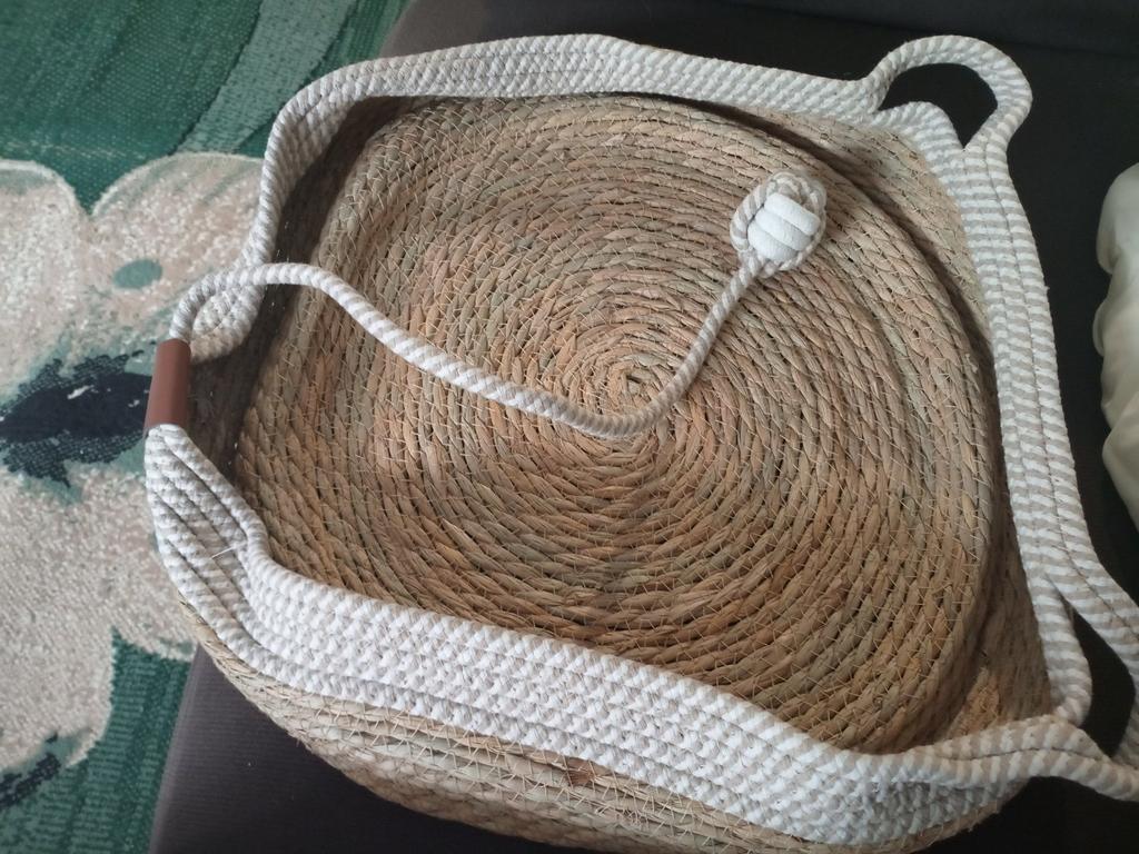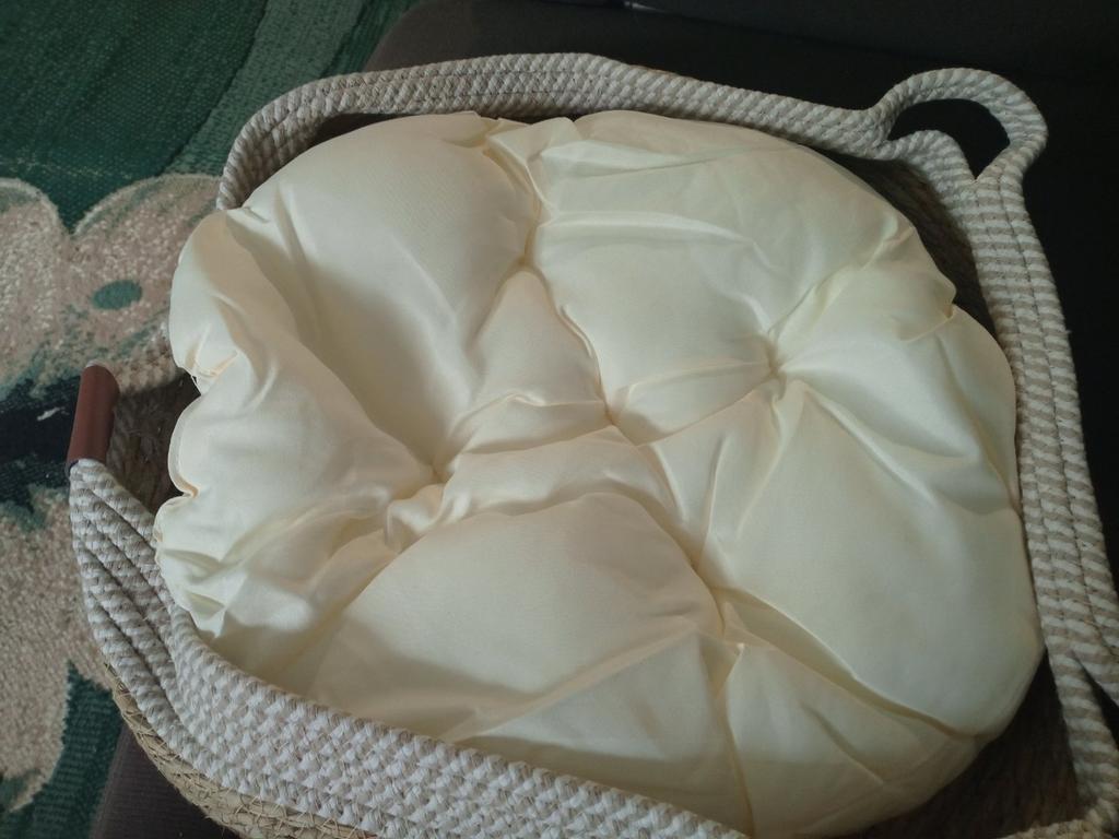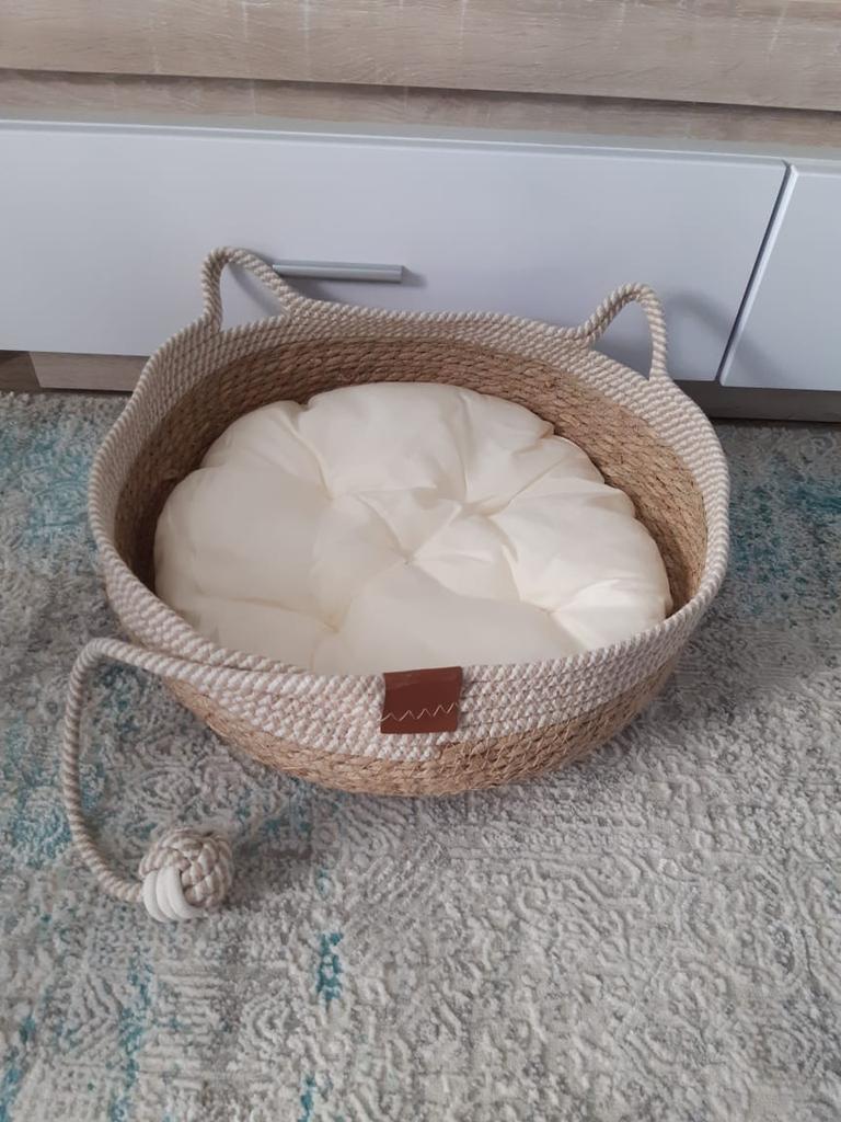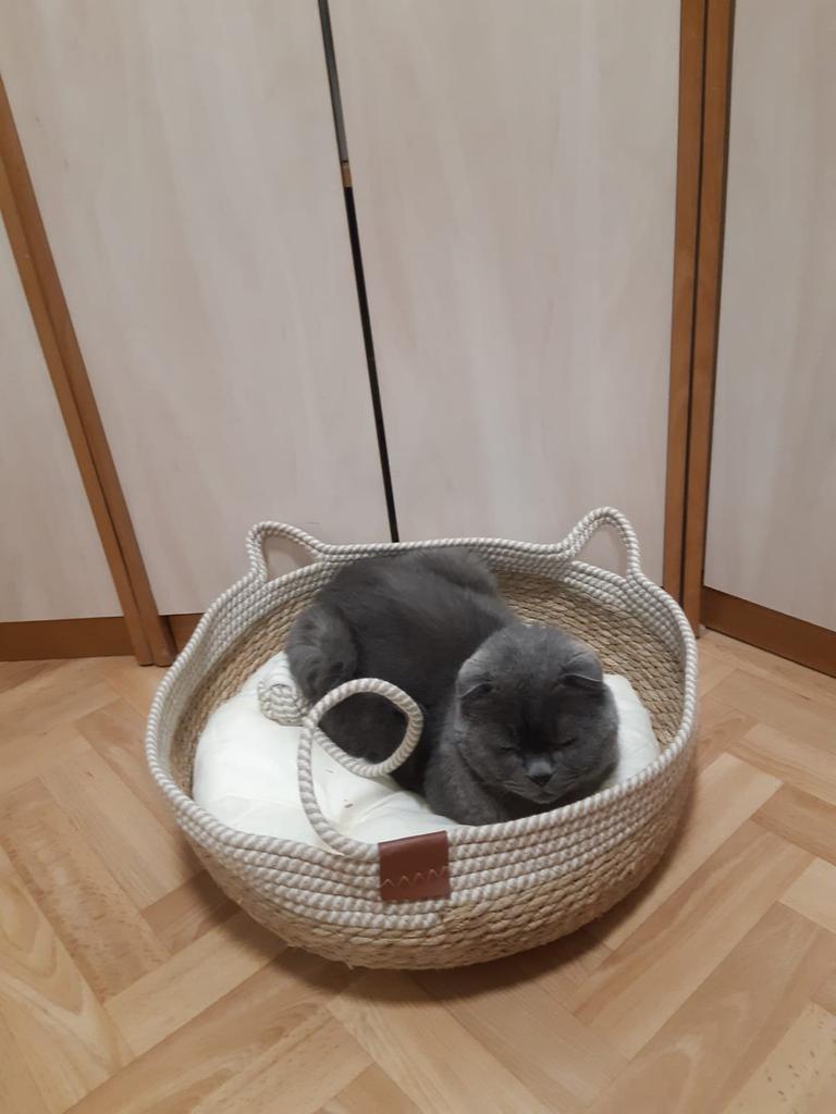 Классная корзина -лежанка для кота😍 Единственное, по размеру, не пойму как продавец делал свои замеры. Я брала, где у продавца указано 300 на 130. У меня получилось, что в обхвате по самому широкому верхнему краю - 114 см. Диаметр дна 23 см. В принципе взрослый кот вполне себе помещается👌 Корзина качественная и выглядит стильно. Придраться мне не к чему. На подушке швы ровные. Наполнитель похож на синтепон. Я довольна покупкой 🥰