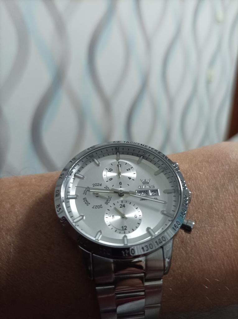 Получил 12.07.2024. Упаковка в идеальном состоянии, часы можно сразу дарить. Выглядят средним размером, везде плёнка приклеена. Водонепроницаемость хорошая, купался час в реке, замечаний нет. За 2 дня проверки шли точно, секунды не засекал, мне достаточно. Единственный минус: тонкие белые стрелки на белом циферблате плохо видно.