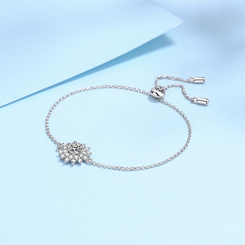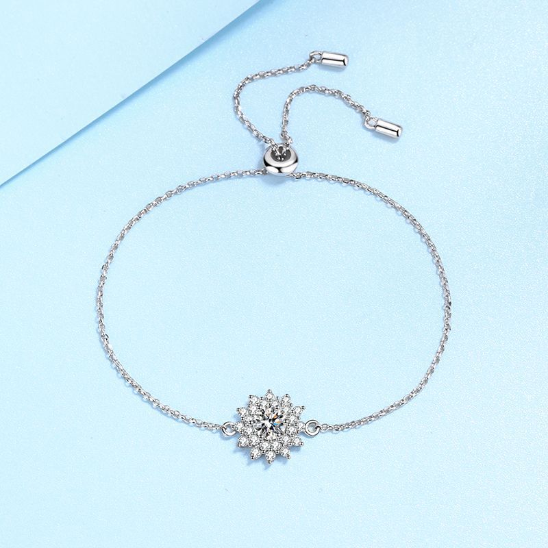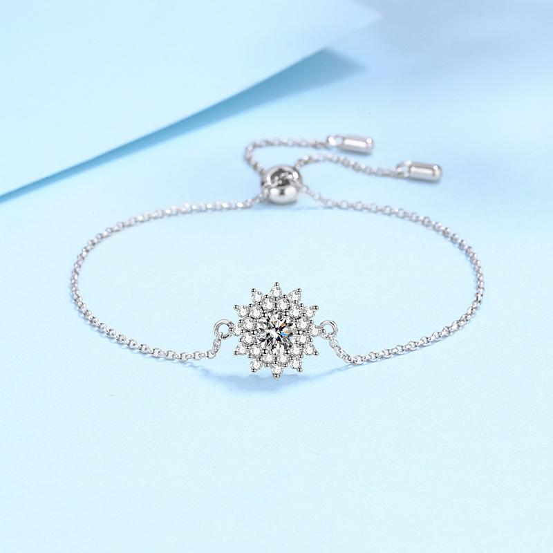 Весенне-летний новый стильный браслет из стерлингового серебра S925 с муассанитом и подсолнухом, женский регулируемый универсальный браслет с регулируемым темпераментом