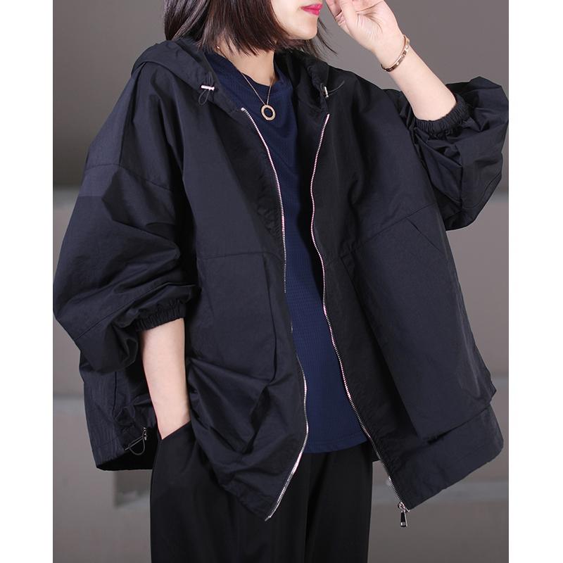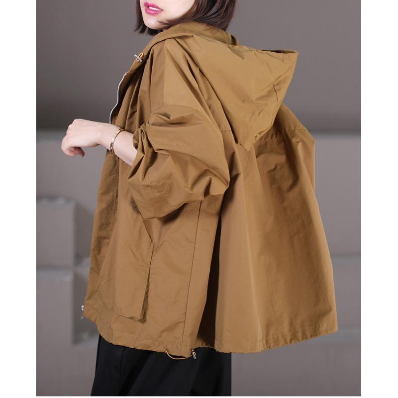 Dimanaf 2024 женские весенние куртки ветровка женская большая молния «летучая мышь» свободная мода с капюшоном больших размеров с открытой строчкой
