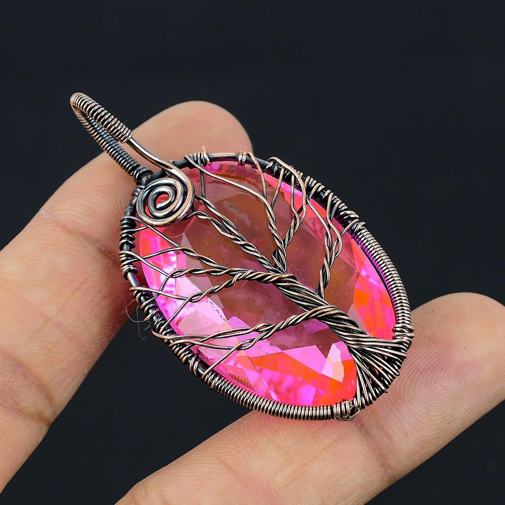 Натуральный Древо Жизни Кунцит Драгоценный Камень Медная Проволока Подарочная Подвеска 2,3 дюйма K4j88