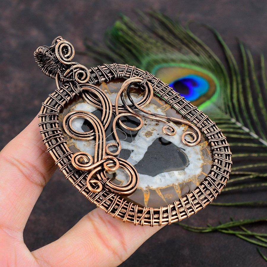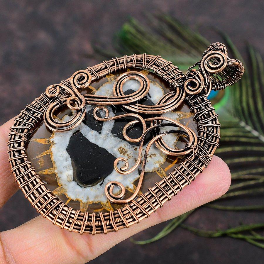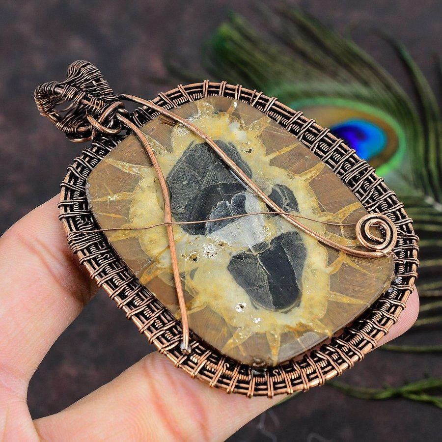 Подвеска из медной проволоки ручной работы из натуральной грязевой трещины ископаемого драгоценного камня 3,62 g7E27