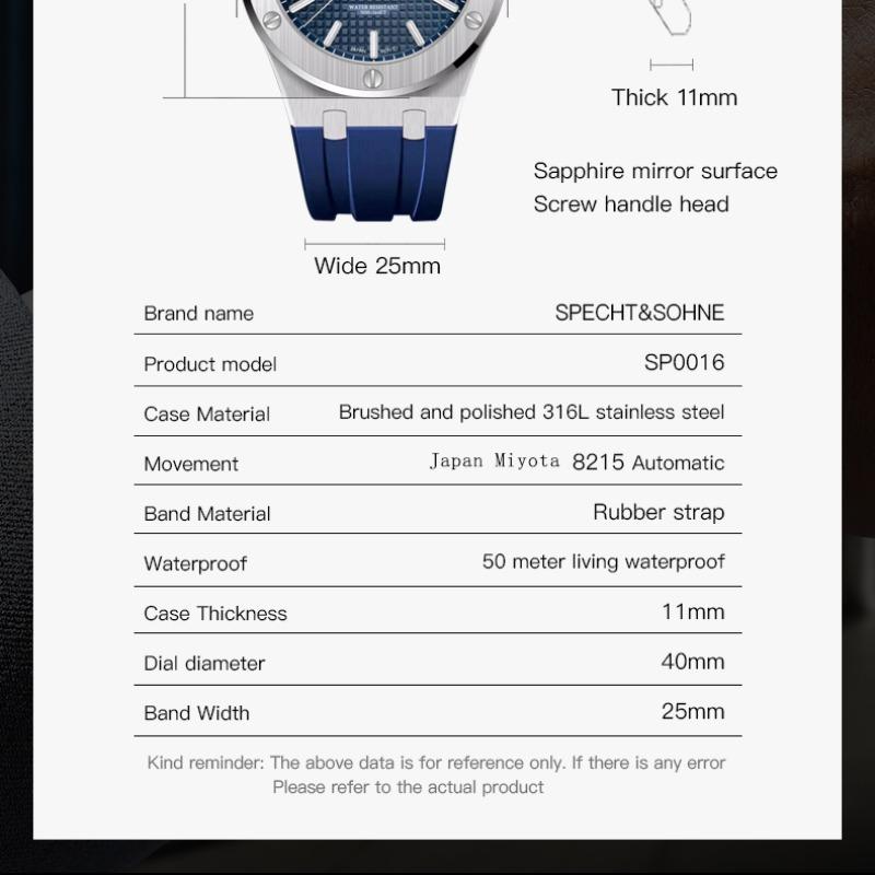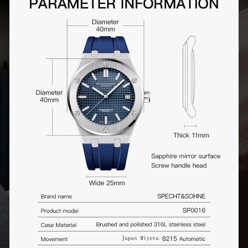 Новинка 2024 года, высококачественные механические часы Specht & Sohne Miyota 8215 Movt, спортивные часы из нержавеющей стали, водонепроницаемые