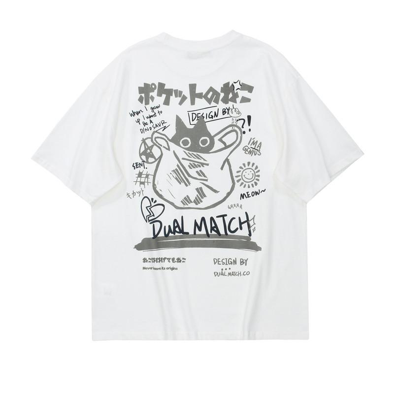 Женские футболки с героями мультфильмов, летние футболки с короткими рукавами с принтом Harajuku Kawaii Cat, женская уличная одежда для пар, свободная одежда, топы Y2K