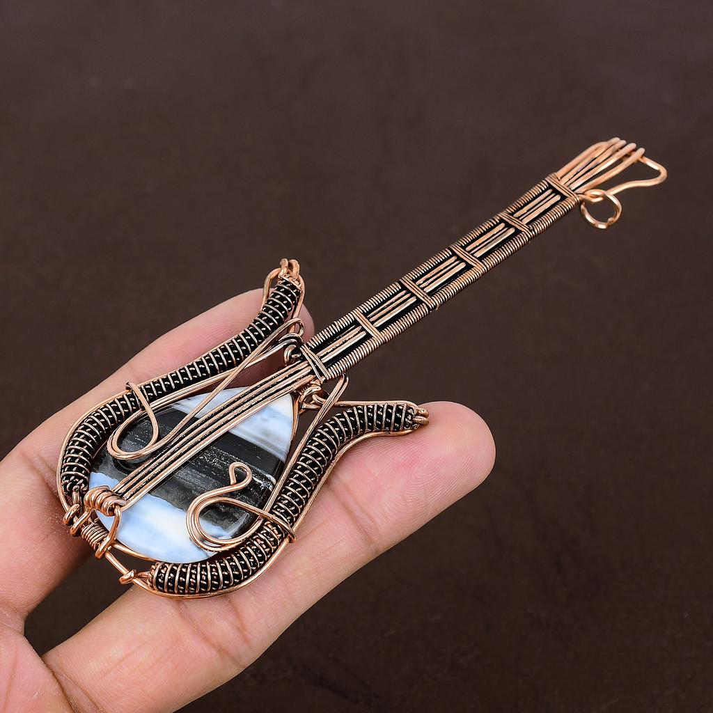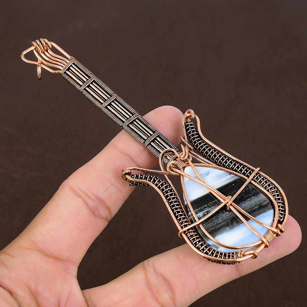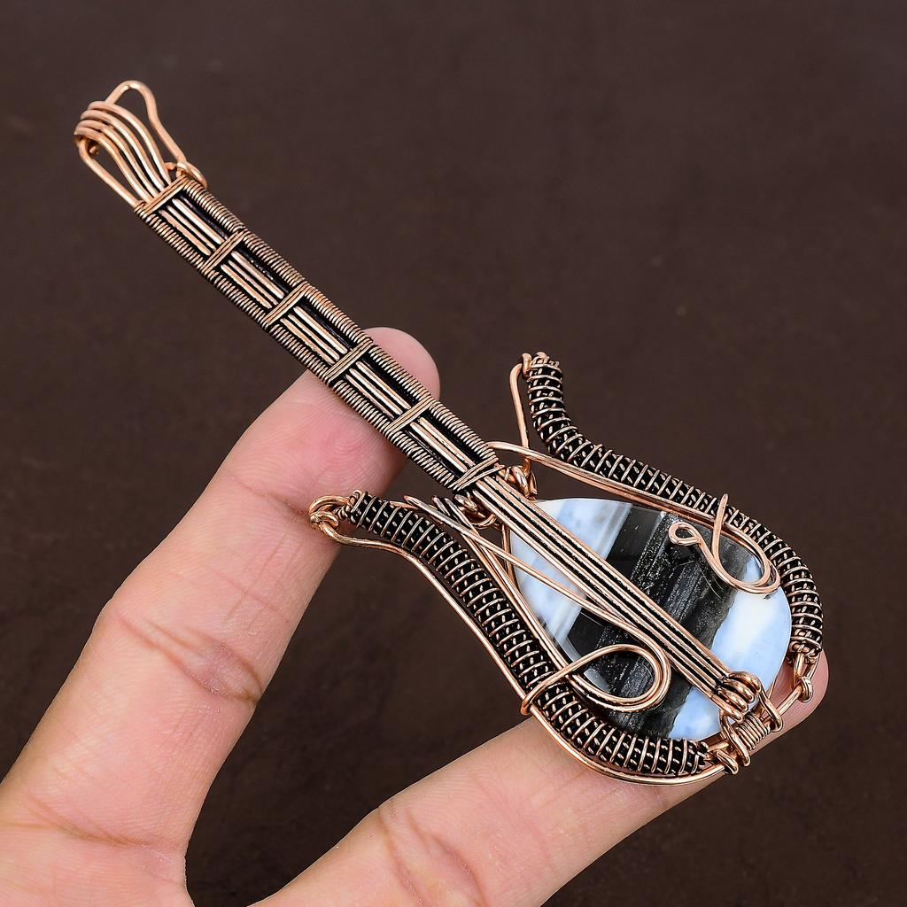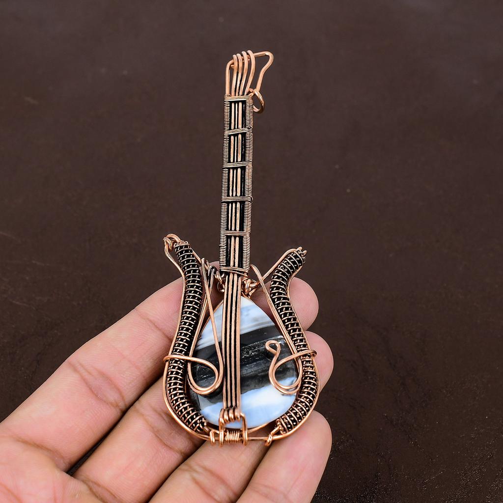 Подвеска для гитары из натуральной медной проволоки Owhyee с синим опалом ручной работы 4,53 дюйма P5c42