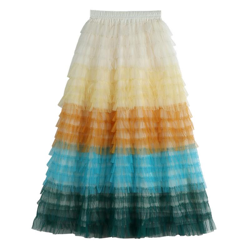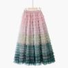 DX ~~ Новая сетчатая юбка с радужным градиентом для женщин, новая пышная юбка средней длины с высокой талией для похудения