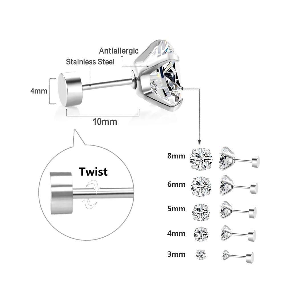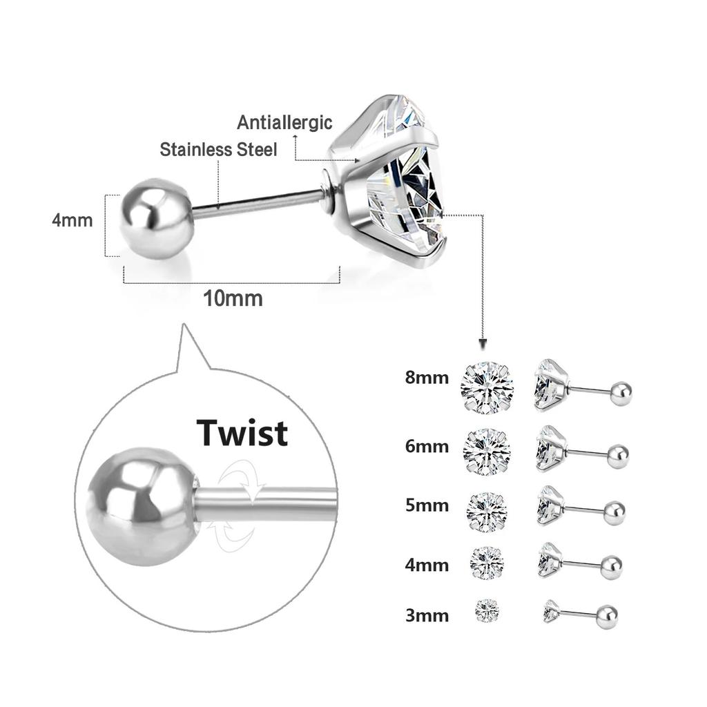 LUXUSTEEL 1 пара/2 шт. серьги-гвоздики из нержавеющей стали с кристаллами для женщин и мужчин 4 зубца козелка круглые прозрачные украшения для ушей с кубическим цирконием